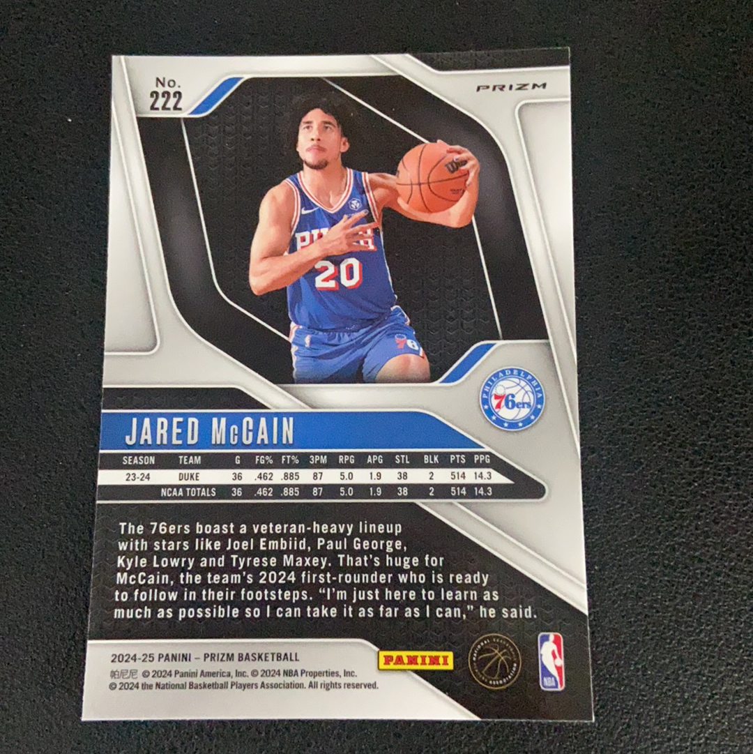 2024-25 Panini Prizm Jared McCain RC 【9527拍卖】76人 麦凯恩 魔仙哥 新秀 值得收藏 粉碎冰