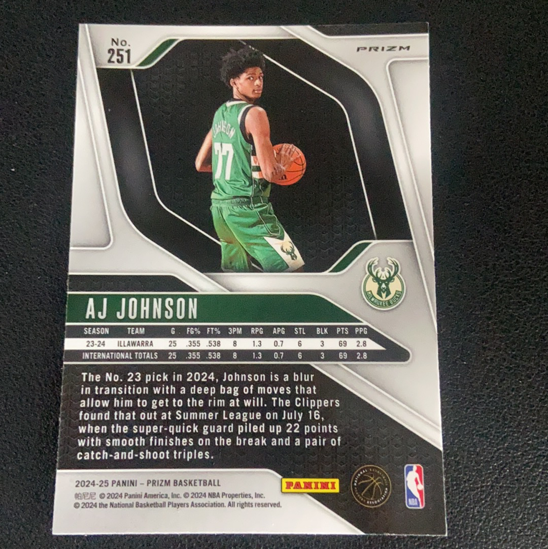 2024-25 Panini Prizm AJ Johnson 【9527拍卖】pz AJ 约翰逊 雄鹿 新秀 RC 银折 卡品如图