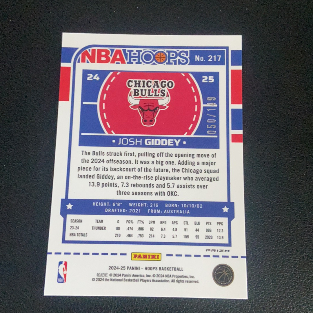 2024-25 Panini Hoops Josh Giddey 公牛 约什 吉迪 绿折 149编 折射 专收凑套必备