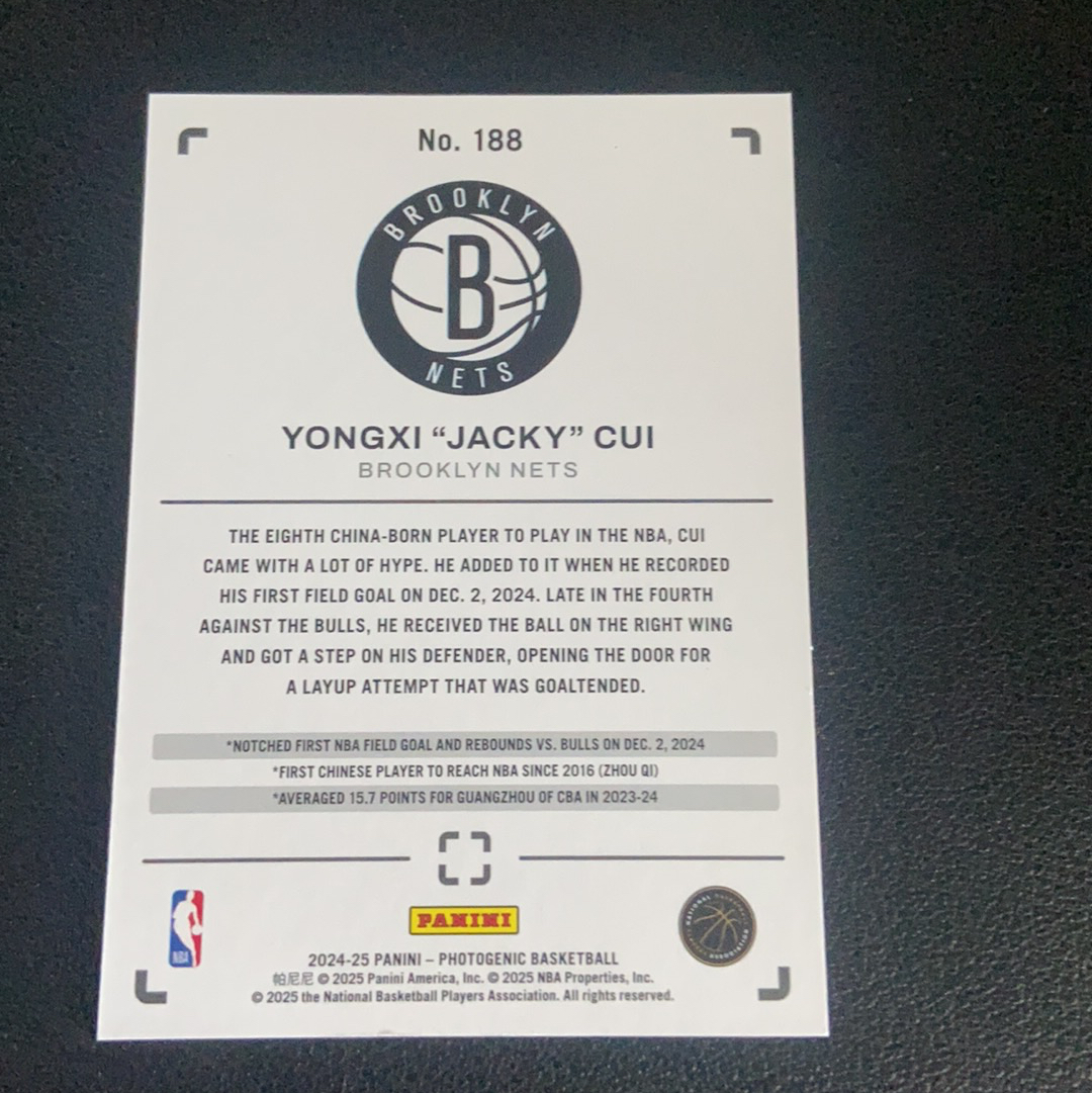 2024-25 Panini PaniniPhotoGenicNBA 崔永熙 RC 【9527拍卖】上镜 CUI YONGXI Jacky 崔永熙 篮网 新秀RC 65编 点点折