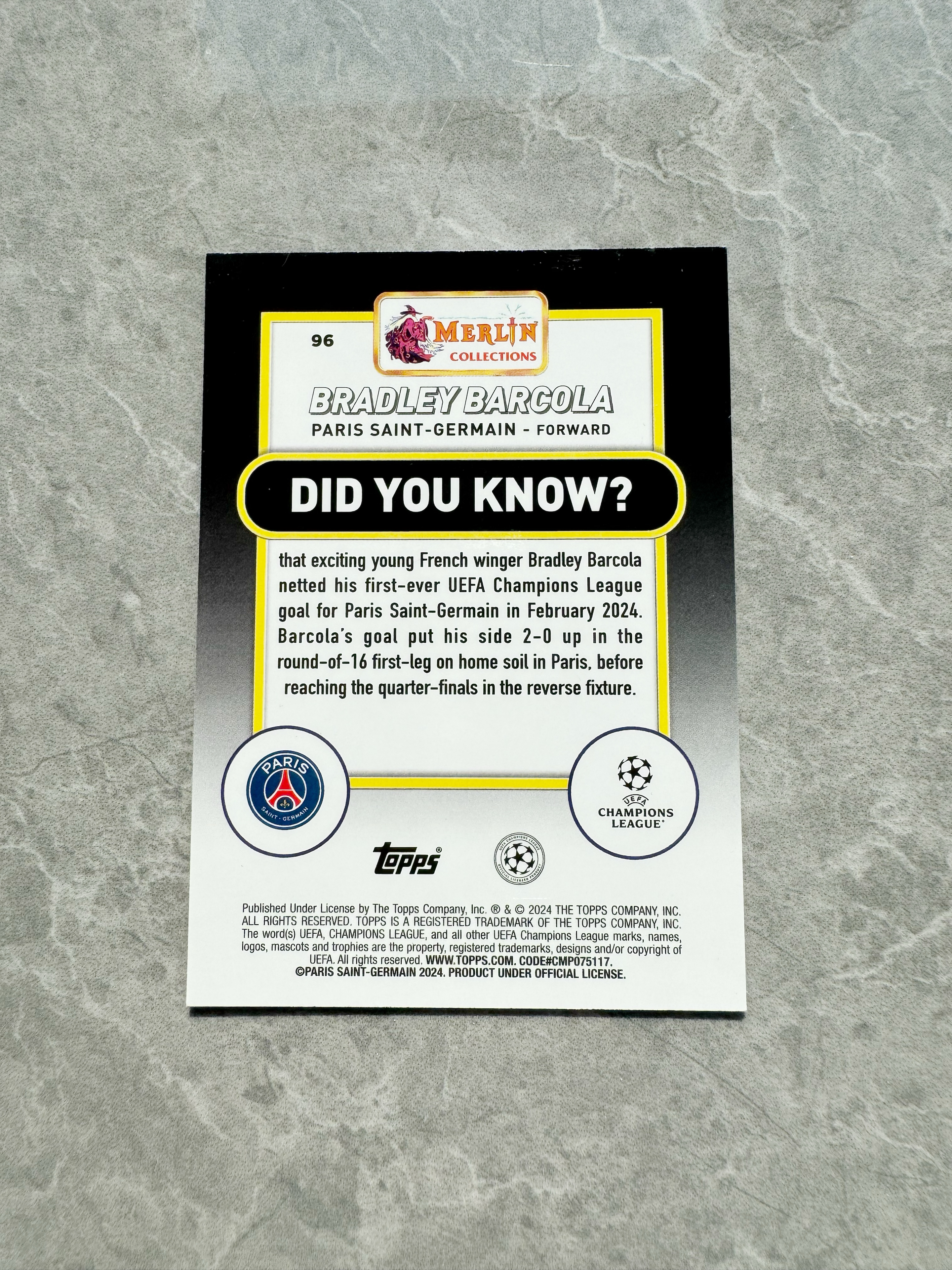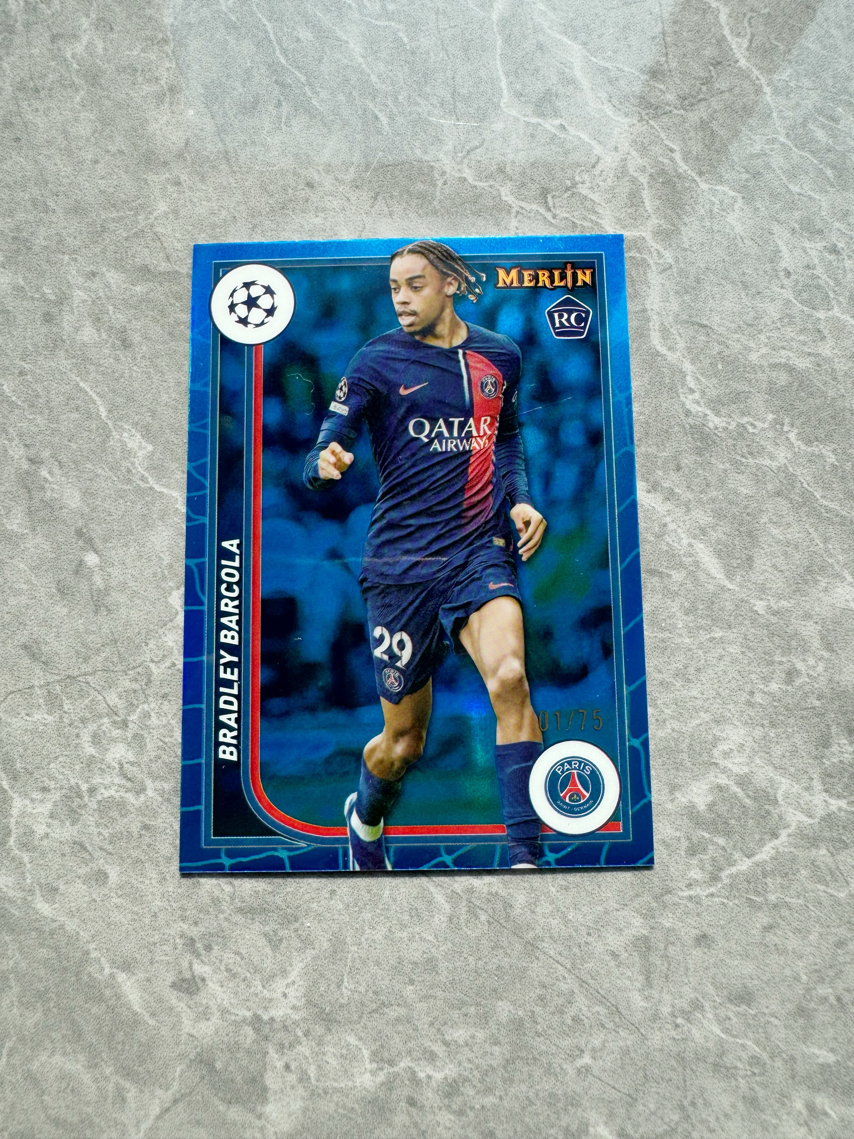 2023 Panini Merlin chrome Bradley Barcola RC 欧冠 布拉德利 巴尔克拉 新秀 法国 巴黎圣日耳曼 /75编 蓝折 微光折 折射