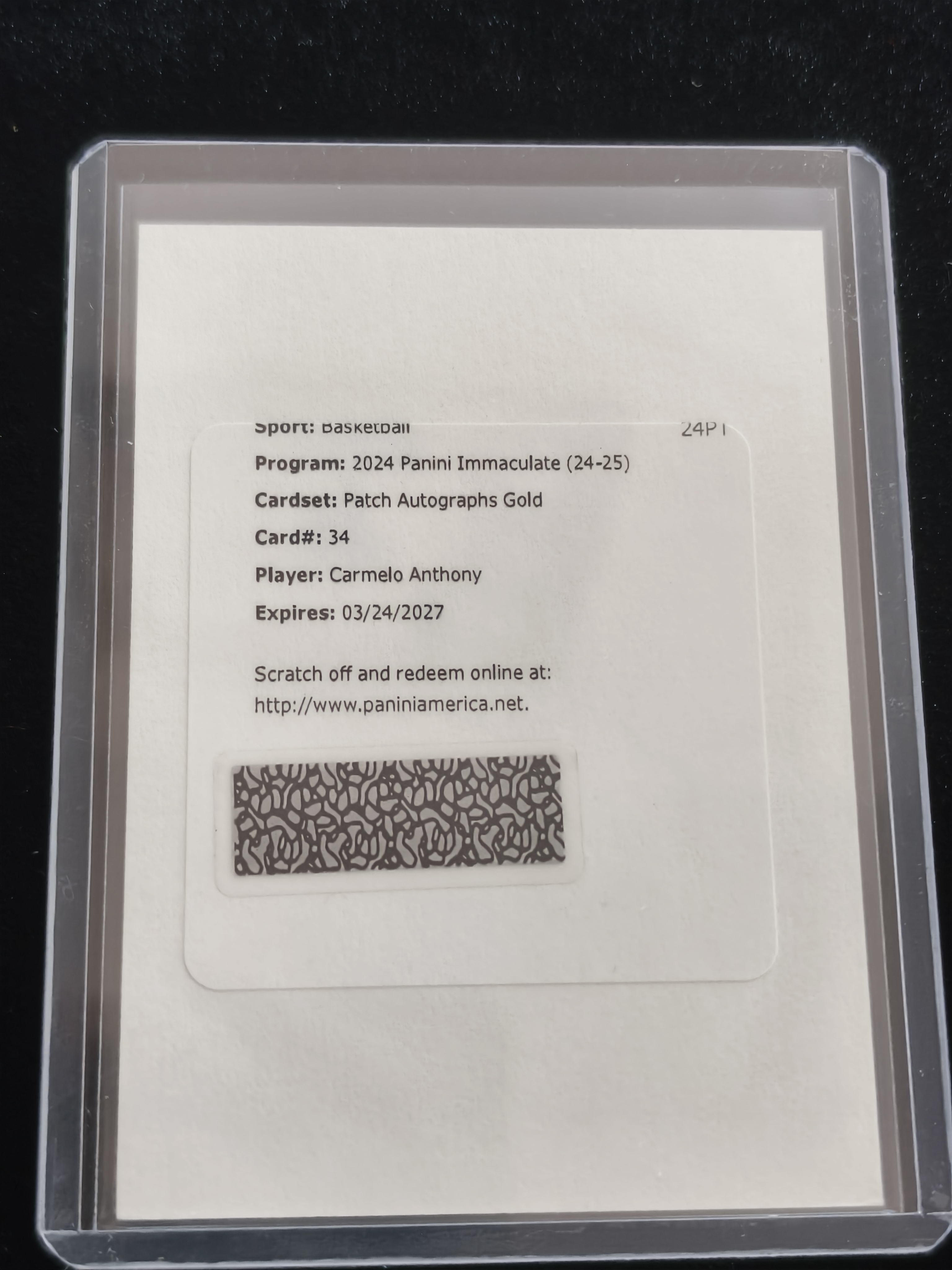 2024-25 Panini Immaculate Carmelo Anthony 卡梅罗 安东尼 甜瓜 尼克斯 金平行 gold 10编 湖人 签字 物料patch 交换板 看涨 机长代拍 9163