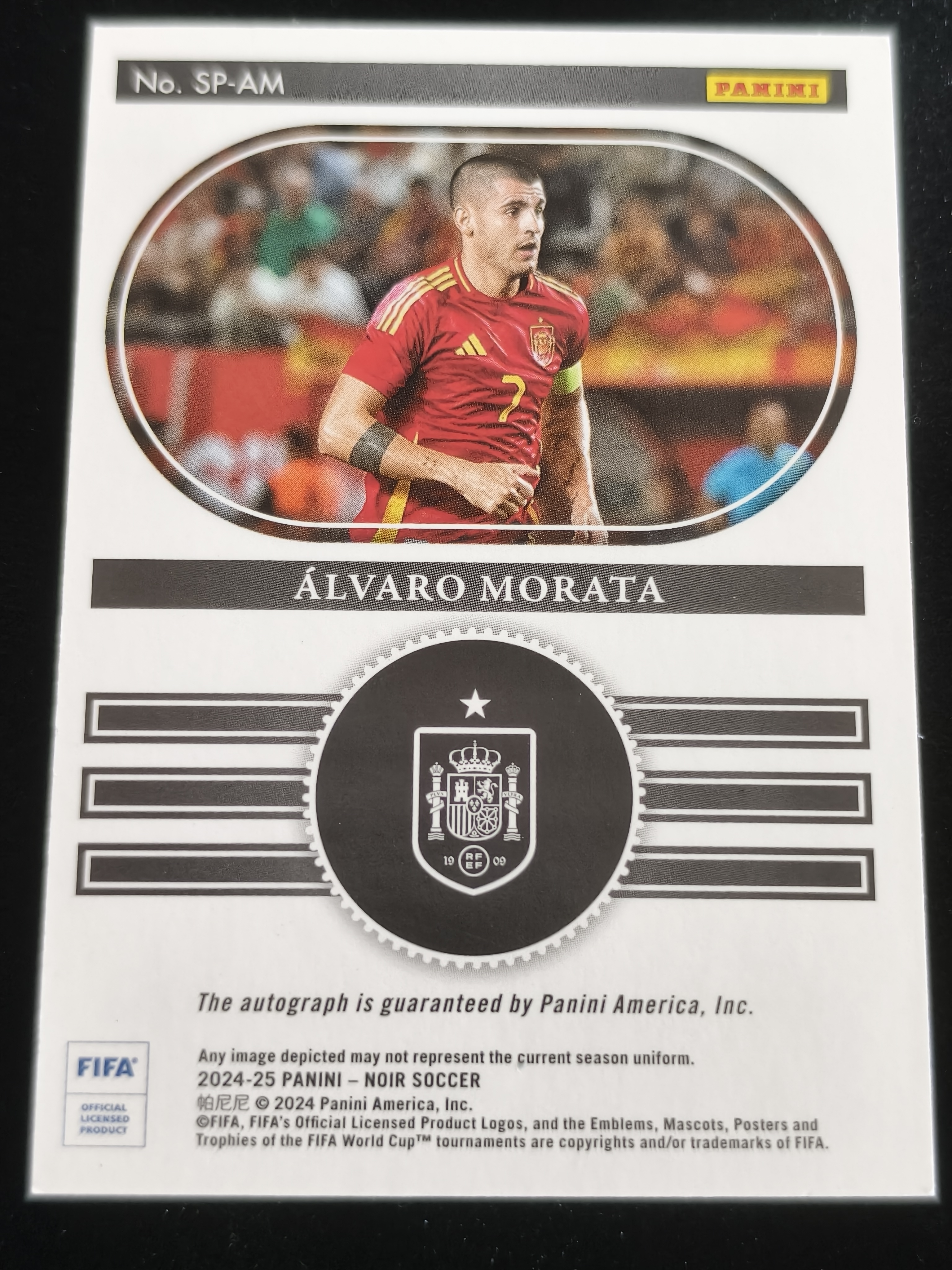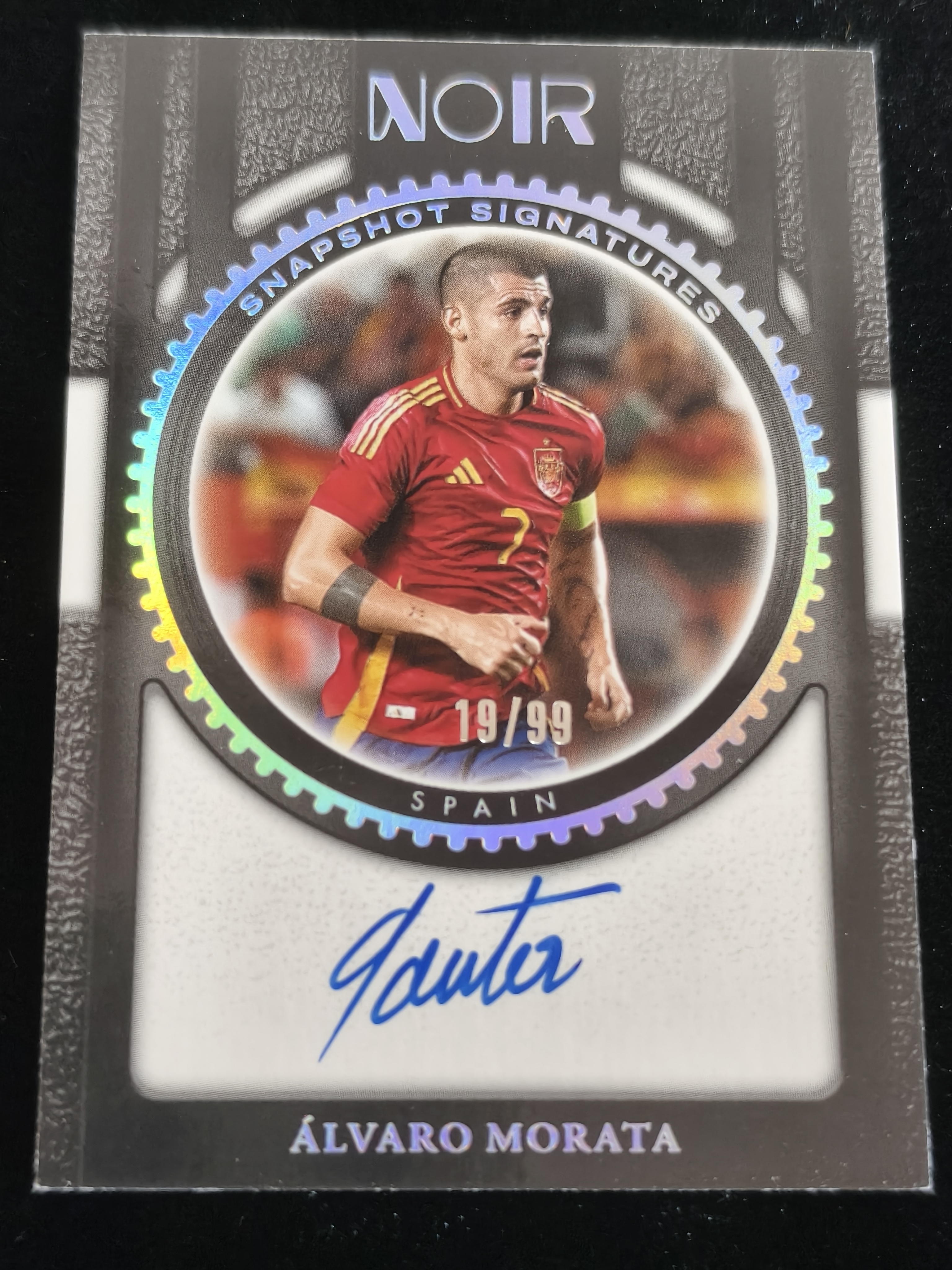 阿尔瓦罗 莫拉塔 19/99编 签字 卡签 AUTO Snapshot 快照签字卡 2024-25 Panini NOIR 诺尔 银折 银闪 ALVARO MORATA 西班牙 马竞 机长代拍 zhq