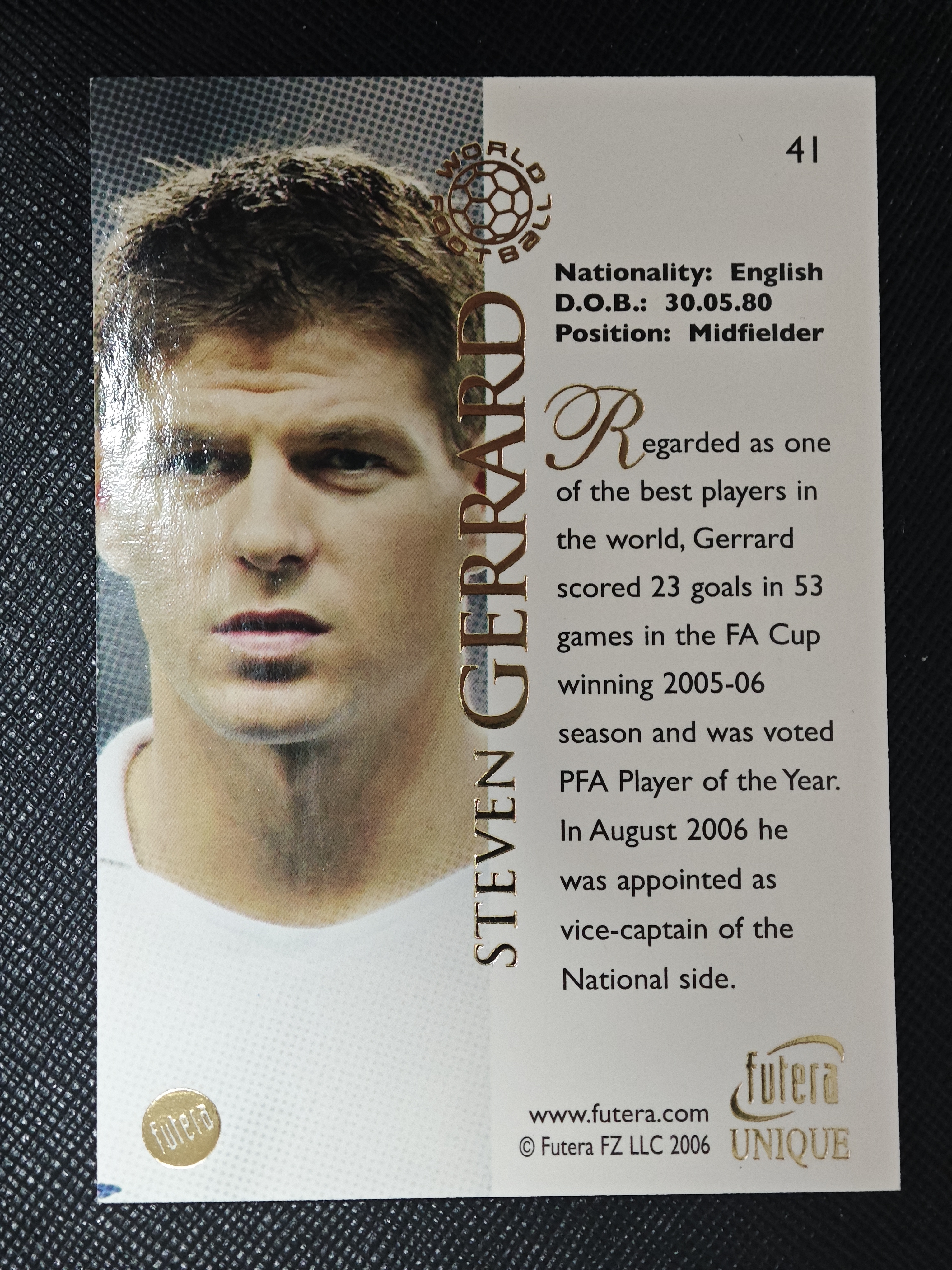 2006 Futera Unique Steven Gerrard 杰拉德 英格兰 利物浦 Liverpool 红军 world football 传奇队长 年轻帅气 老卡稀有! 卡品如图