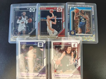 2.参拍:卡品墨迹如图所示(厚卡异形卡等都有正常白边白角,部分系列会有特殊瑕疵),请认真看图后再谨慎出价。不接受任何艺术家买卡,如拍到卡后有任何艺术家行为(包括但不限于在通行卡品里挑瑕疵索要赔偿或退卡等)一律拉黑投诉处理。所卖卡未经描述均为通行品,可能会有细微瑕疵;打包标小卡可能会有不同程度的瑕疵,不保障卡品;评级卡壳和原封砖的磨损不包含在卡品范围内;多张上拍卡品通行的同款卡片随机发货。竞拍前可以私聊要细节图,成交后再以有瑕疵、勿拍等理由退卡的一律拒绝,介意者请勿参拍!参拍即视为已读同意!