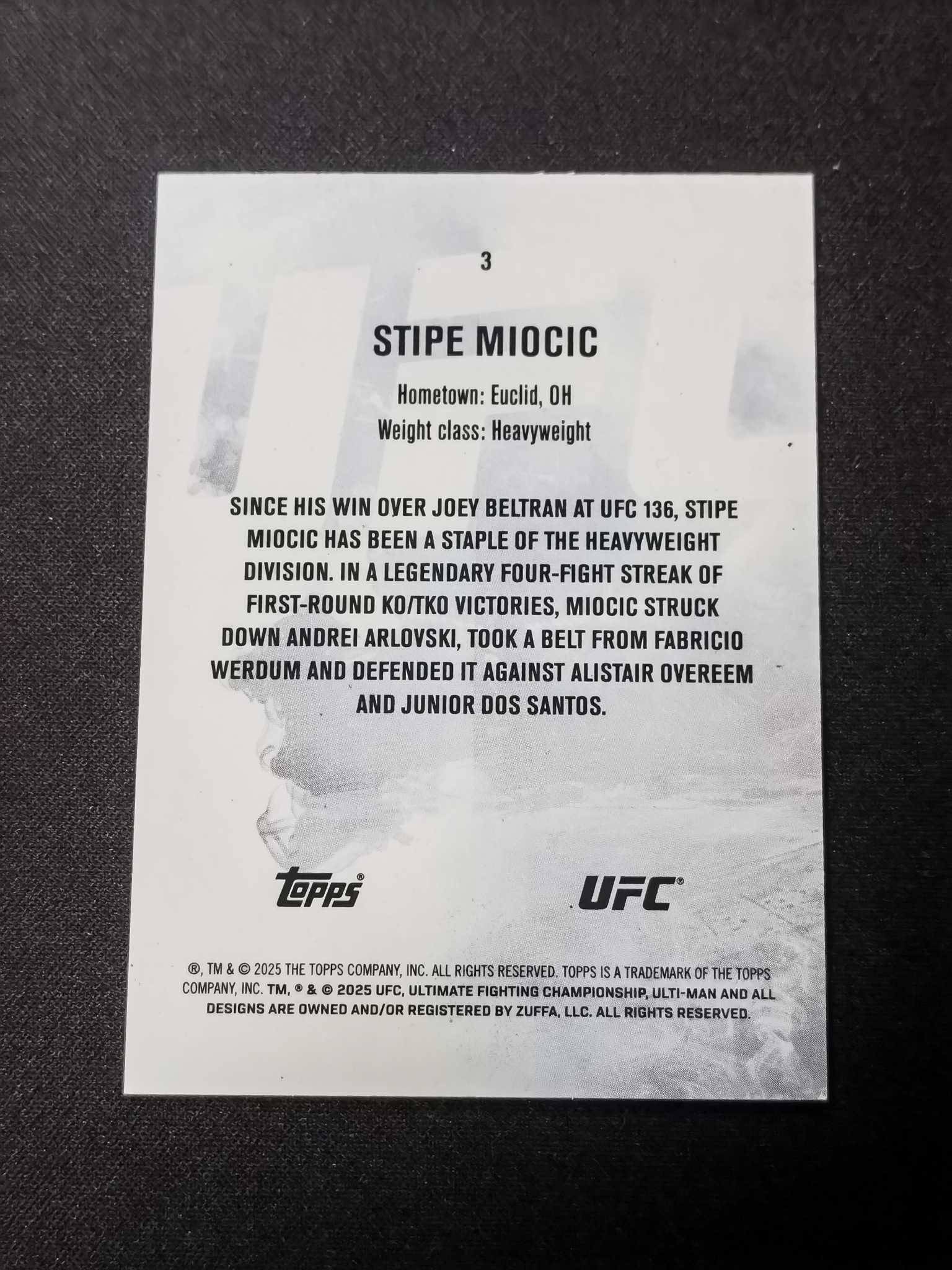 2025 Topps knockout Stipe Miocic 斯蒂普 米欧西奇 米西奇!UFC历史级别重量级冠军!KO系列超低编25编base红平行!选图超帅,数量稀少,eBay价高,专收投资俱佳!