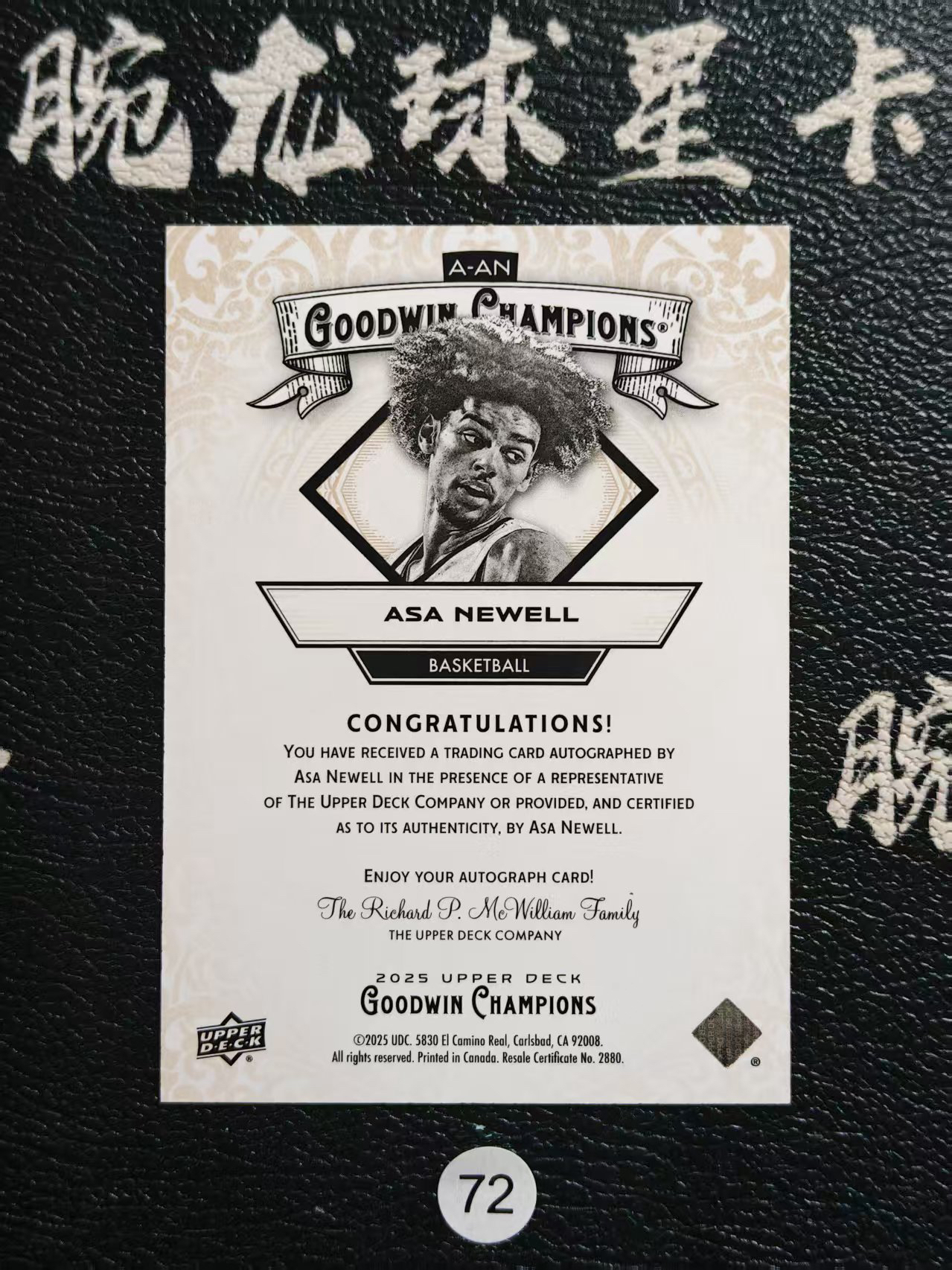 2025 【腕龙拍卖 接代卖】 腕龙Tracy车AQ2 Upper Deck UD 古德温 纽厄尔 签字 卡签 墨迹如图 ASA NEWELL 卡品如图 收藏必备