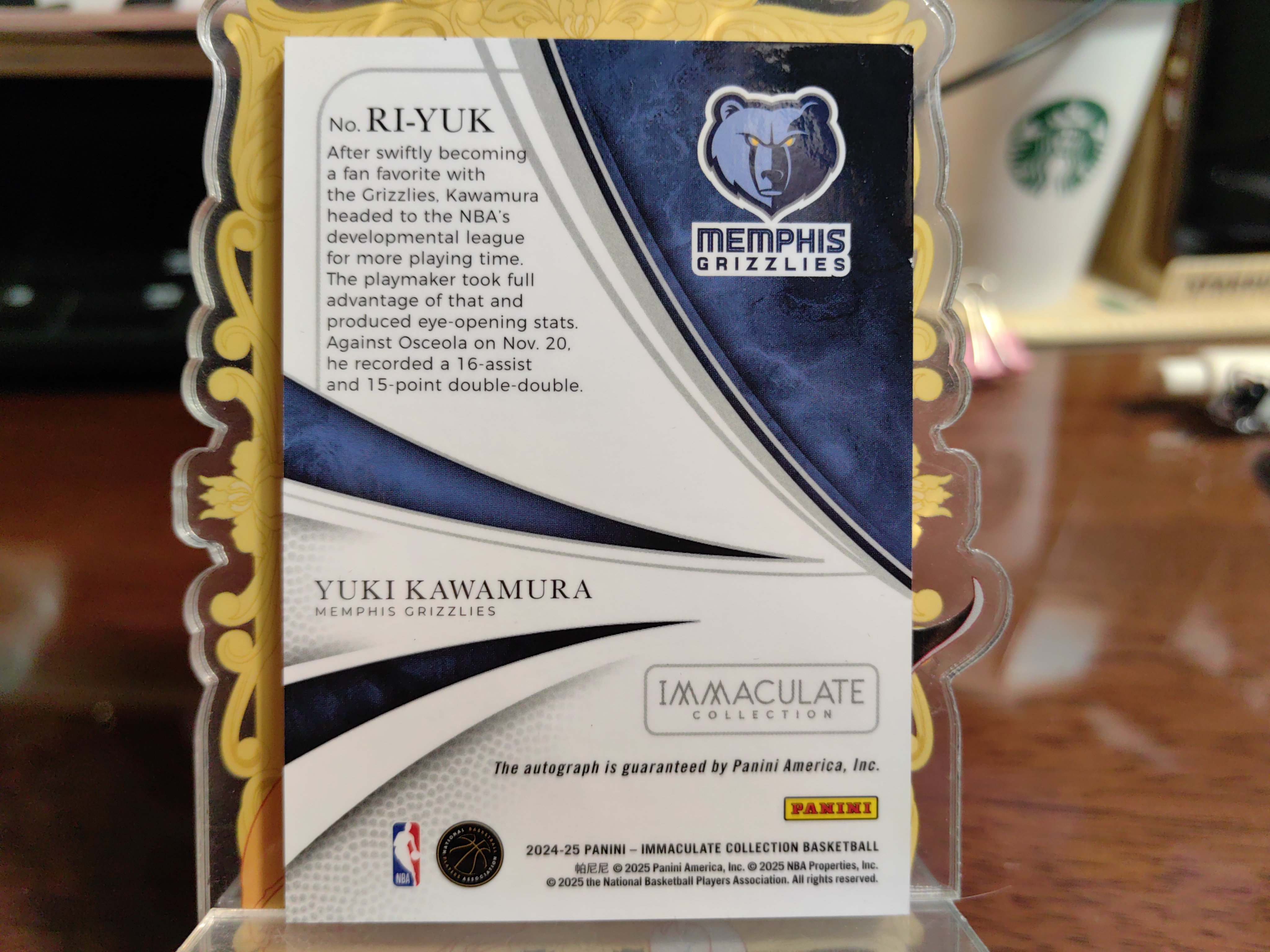 2024-25 Panini Immaculate Yuki Kawamura RC 爱咪咪 灰熊 新秀 河村勇辉 河村永辉 25编 introduction 介绍签字 卡签 单一平行 卡背钝角如图