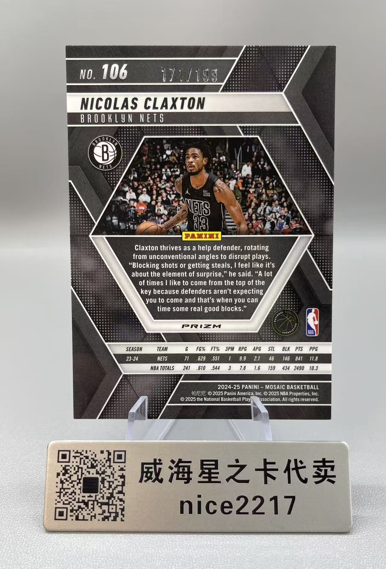 卡品:劳烦仔细看图!!!截标之前可找客服寻要细节照片或者细节视频,一旦出价默认接受卡品(不接受一系列没拍特写,自己没看仔细不想要等理由退换货)截标后不提供任何细节图!如无图片特殊展示瑕疵均为通行品相,一般prizm optic 等系列薄卡的小划痕印刷线,镜面有划痕属于正常品相,国宝IMM等系列厚卡的小白边小白角翘角钝角等,都属于通行品相。完美主义者请直接购买PSA10或者公博金标,发货之后不退不换(购卡的买家拆快递的时候也请拍开箱视频以便维护自己的权益)