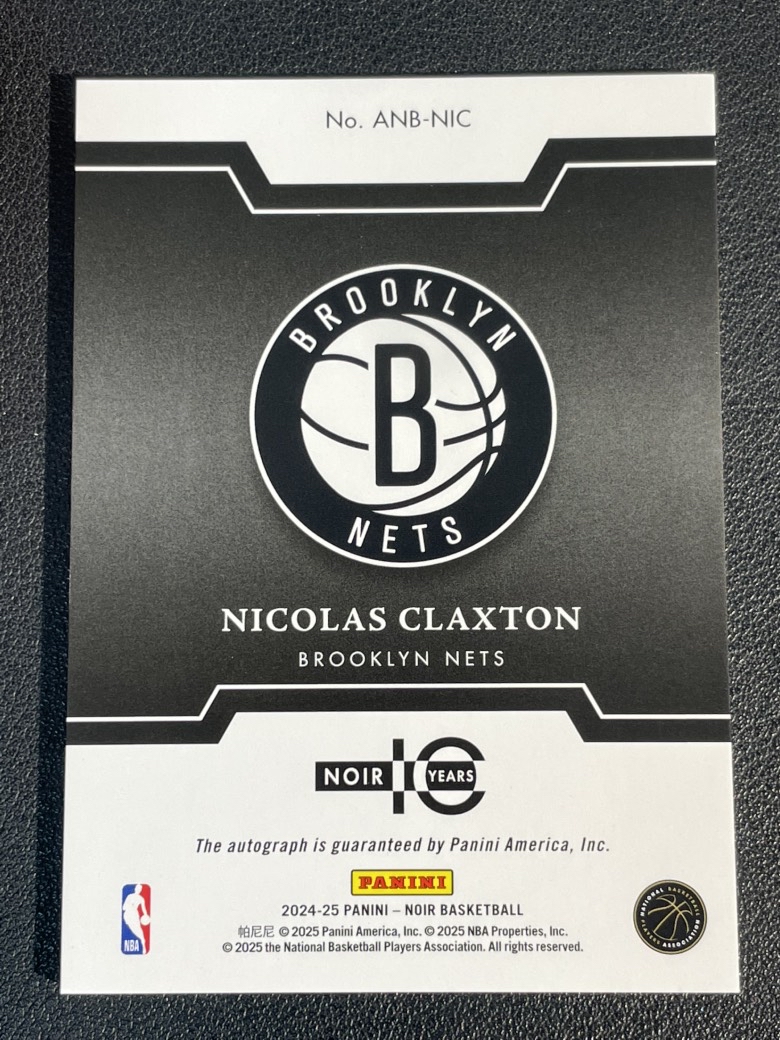 2024-25 Panini Noir Nicolas Claxton 4 尼古拉斯 克拉克斯顿 篮网 诺尔 折射 签字 卡签 背号签 99编 微瑕如图 卡品如图 尖叫代拍 高达