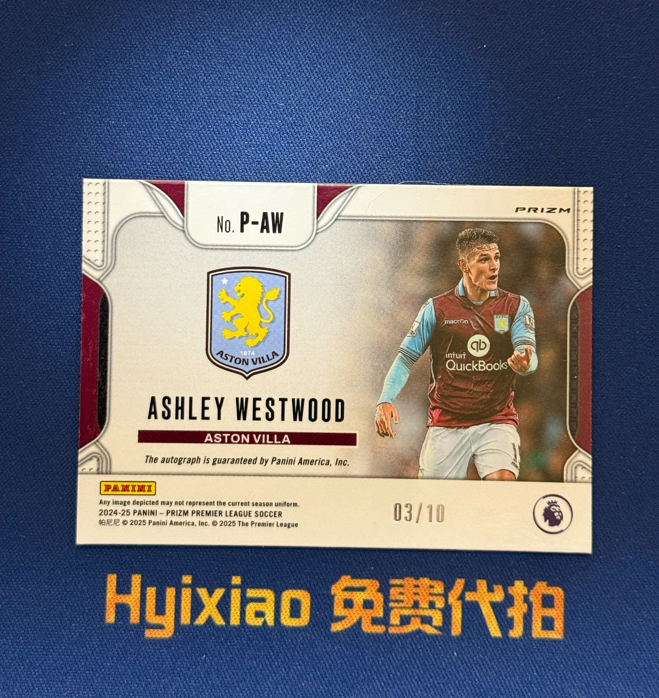 2024-25 Panini Prizm Ashley Westwood (拍前看描述)英超 pz 韦斯特伍德 03/10编 签字 正金折 折射 完美墨迹 超低编 阿斯顿维拉 卡品如图 收藏必备