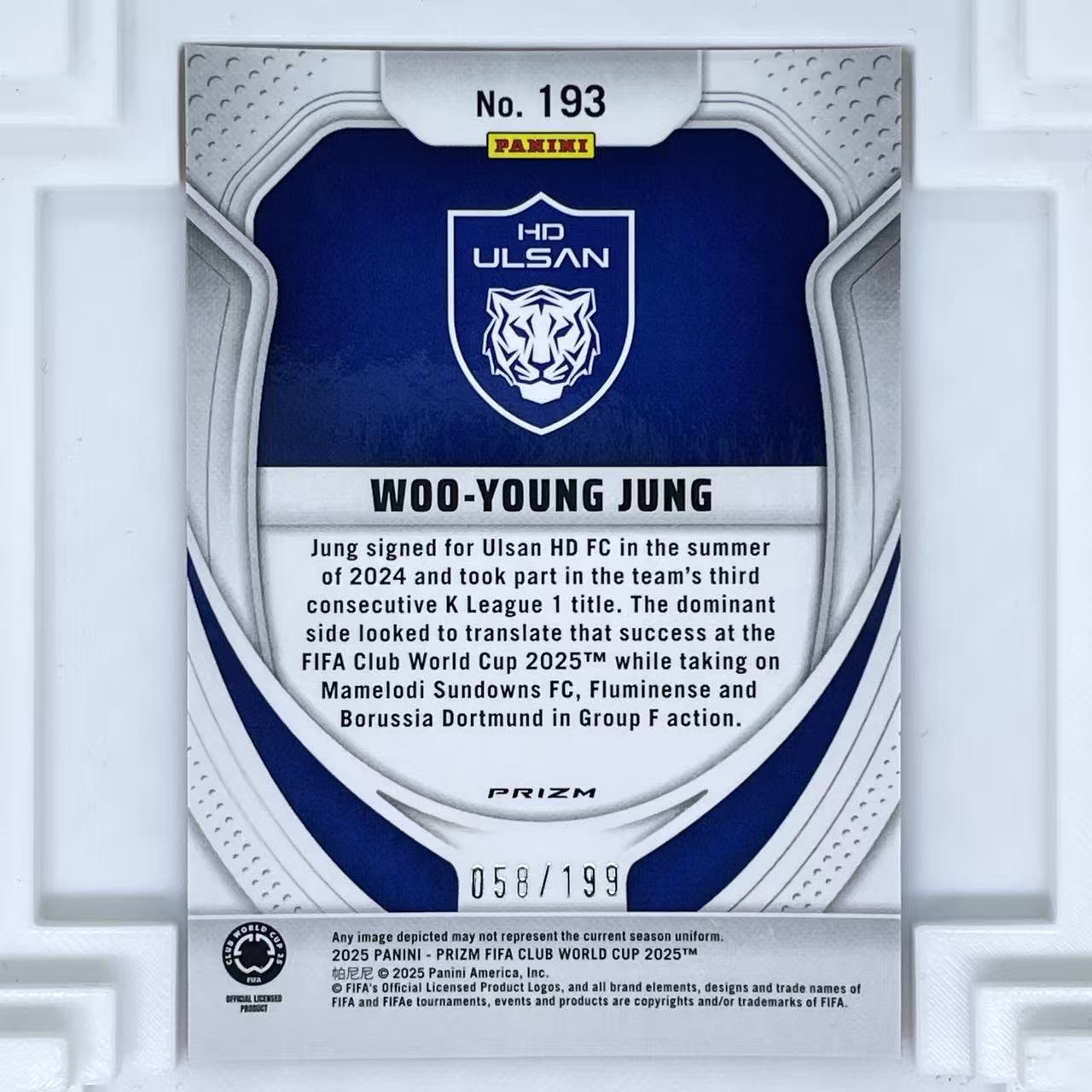 这一项十分重要!!!所有卡片为高清实拍图,劳烦仔细看图!!!有什么需要不清楚的可以联系客服,可以为您单独拍摄卡片额外细节;一旦出价默认接受卡品(不接受一系列没拍特写,自己没看仔细不想要等理由退换货)如无图片特殊展示瑕疵均为通行品相,一般prizm optic 等系列薄卡的小划痕印刷线,国宝IMM等系列厚卡的小白边小白角翘角钝角等,都属于通行品相。完美主义者请直接购买PSA10或者公博金标,发货之后不退不换(购卡的买家拆快递的时候也请拍开箱视频以便维护自己的权益)。描述如没有注明均不含卡砖(需要请与站内沟通)。