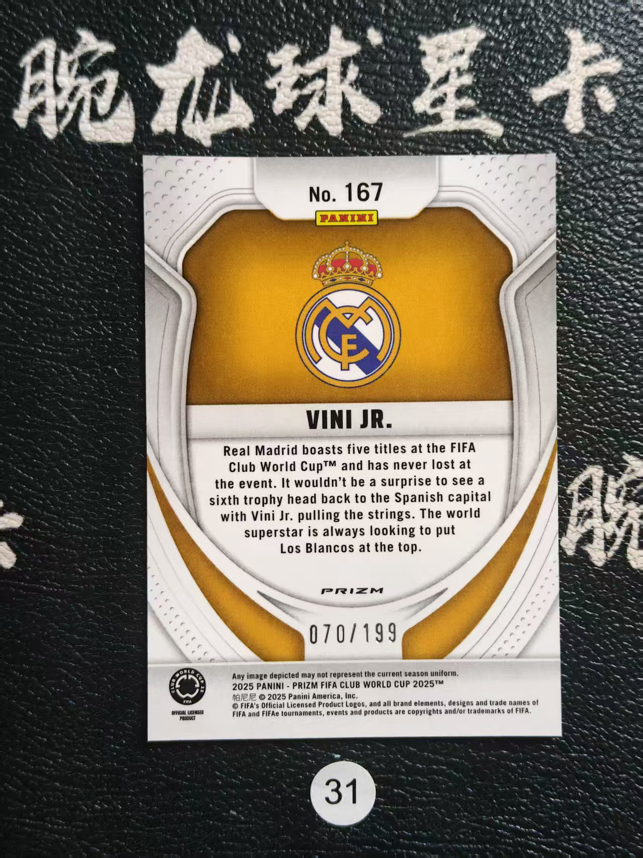 2025 【腕龙拍卖 接代卖】 腕龙夏总AQ6 Panini Prizm 世俱杯 PZ 维尼修斯 皇家马德里 皇马 红折 70/199编 VINI JR. 卡品如图 收藏必备