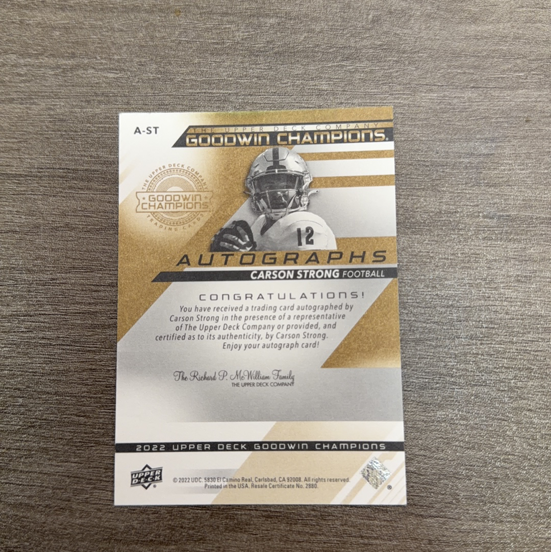 2021 Upper Deck Goodwin Carson Strong 【小V代拍】卡森 斯特朗 橄榄球 卡签 签字 古德温 卡品如图【咬人的猫】T