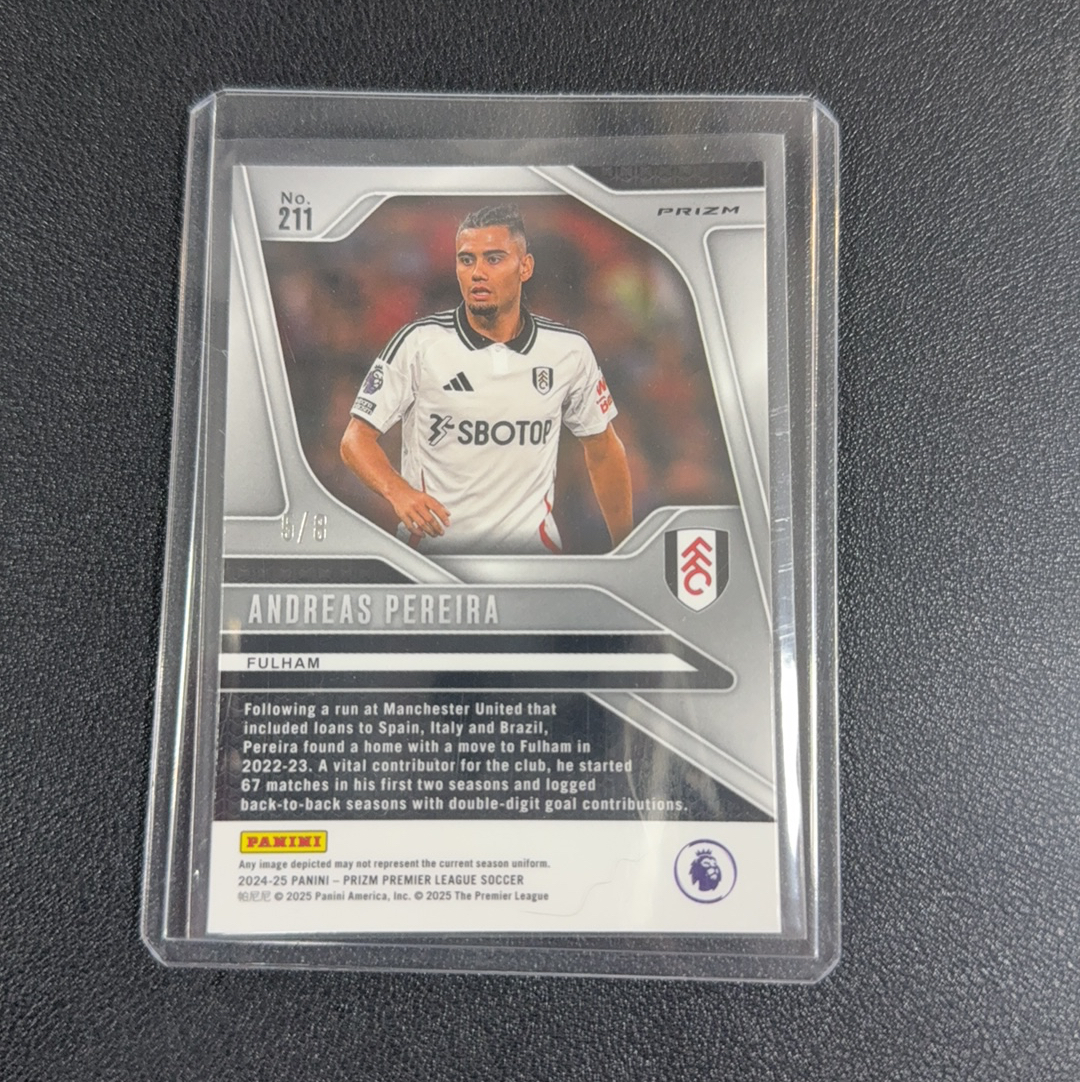 2025 Panini 英超 Andreas Pereira 限量5/8编 富勒姆 安德烈亚斯·佩雷拉 新拆盒子 拆盒及上膜上夹 肉眼未见明显瑕疵