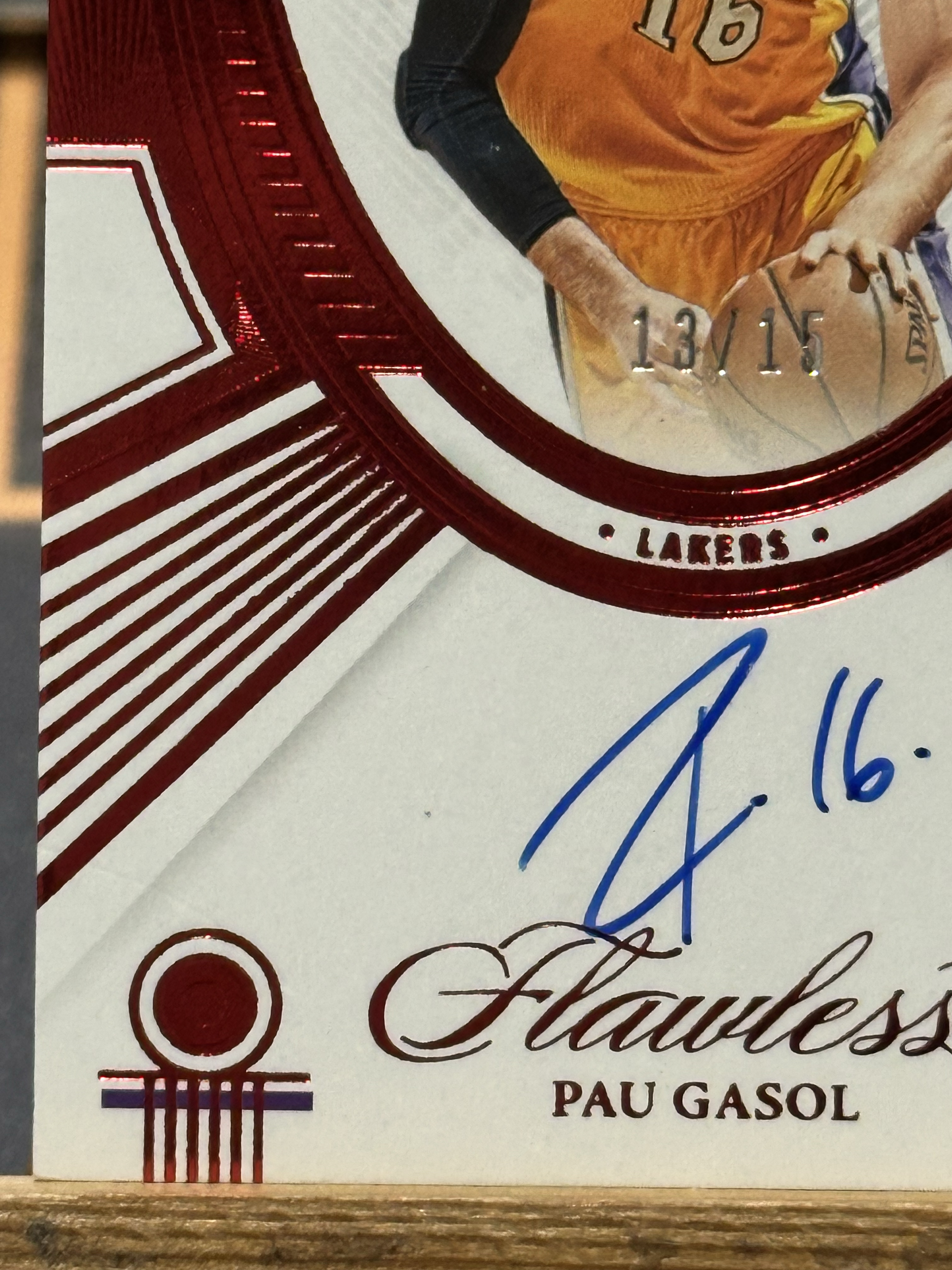 【八爪鱼拍卖🐙免手续费】2021-22 Panini flawless pau gasol 手提 湖人 保罗 加索尔 签字 卡签 /15编 低编 红平行 专收必备 瑕疵看图 天上