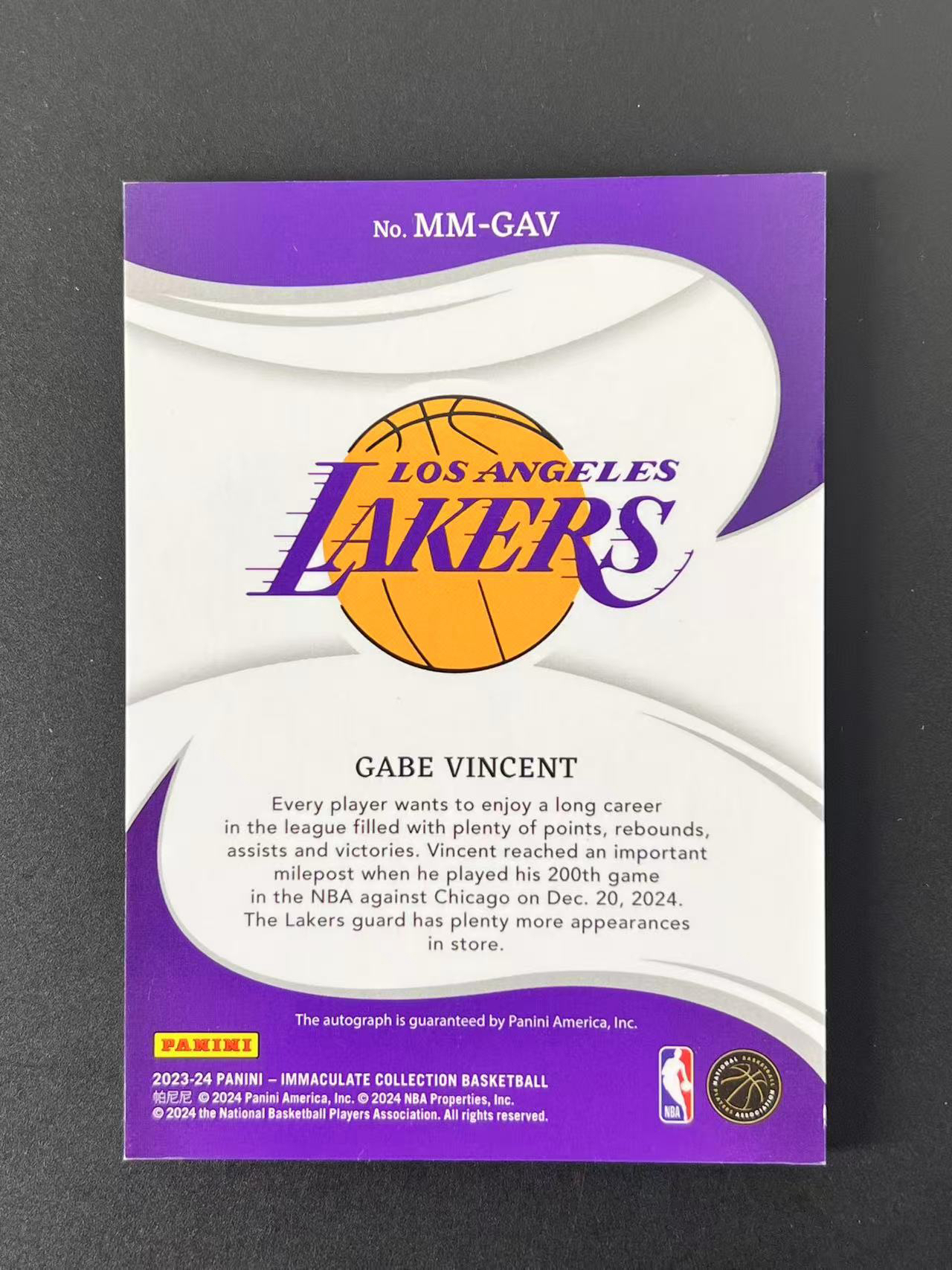 2023-24 Panini Immaculate Gabe Vincent【卡老鼠代卖】爱咪咪 湖人 盖布 文森特 卡签 /99编 签字 无哥 寄付