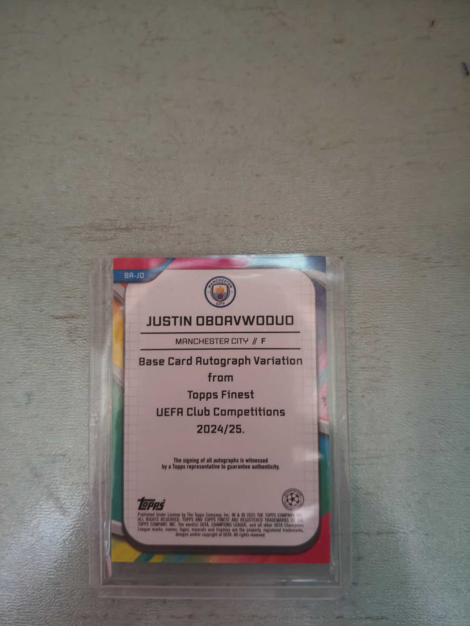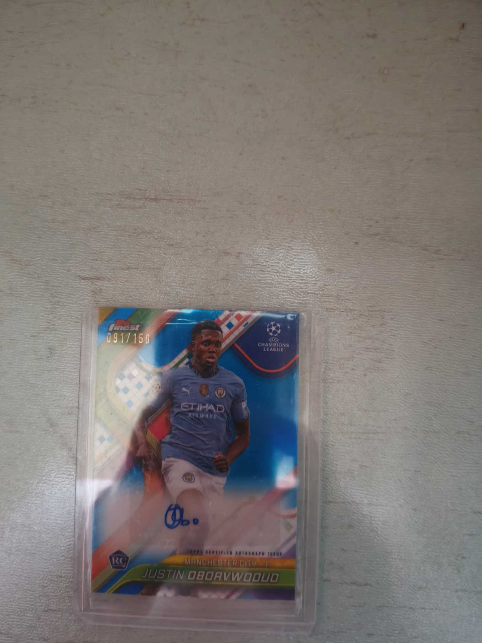 2024-25 Topps Finest oborvwdouo RC 欧冠曼城 新秀RC 奥博阿夫沃多 091/150 蓝折射 签字