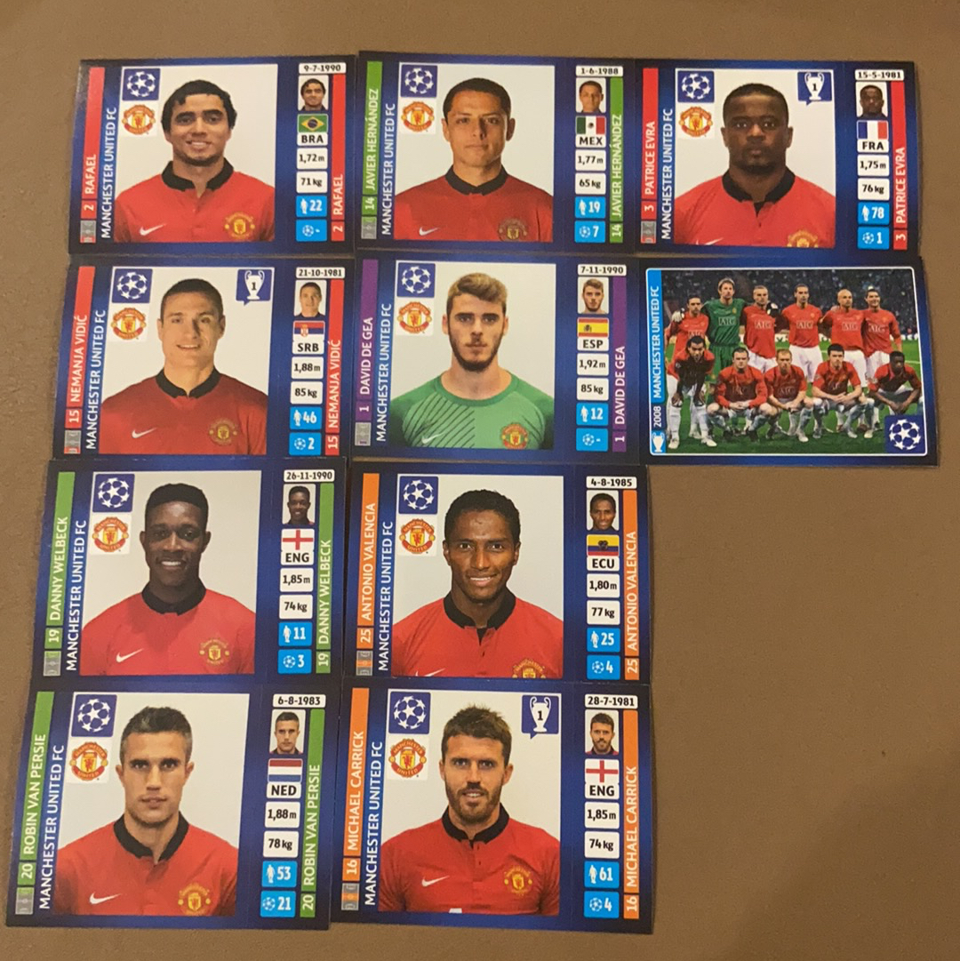 2013-14 Panini 欧冠 贴纸 【不累计不到付】 曼联 多张 德赫亚 维迪奇 范佩西 卡里克 全家福 C罗 范德萨 凑套 卡品如图