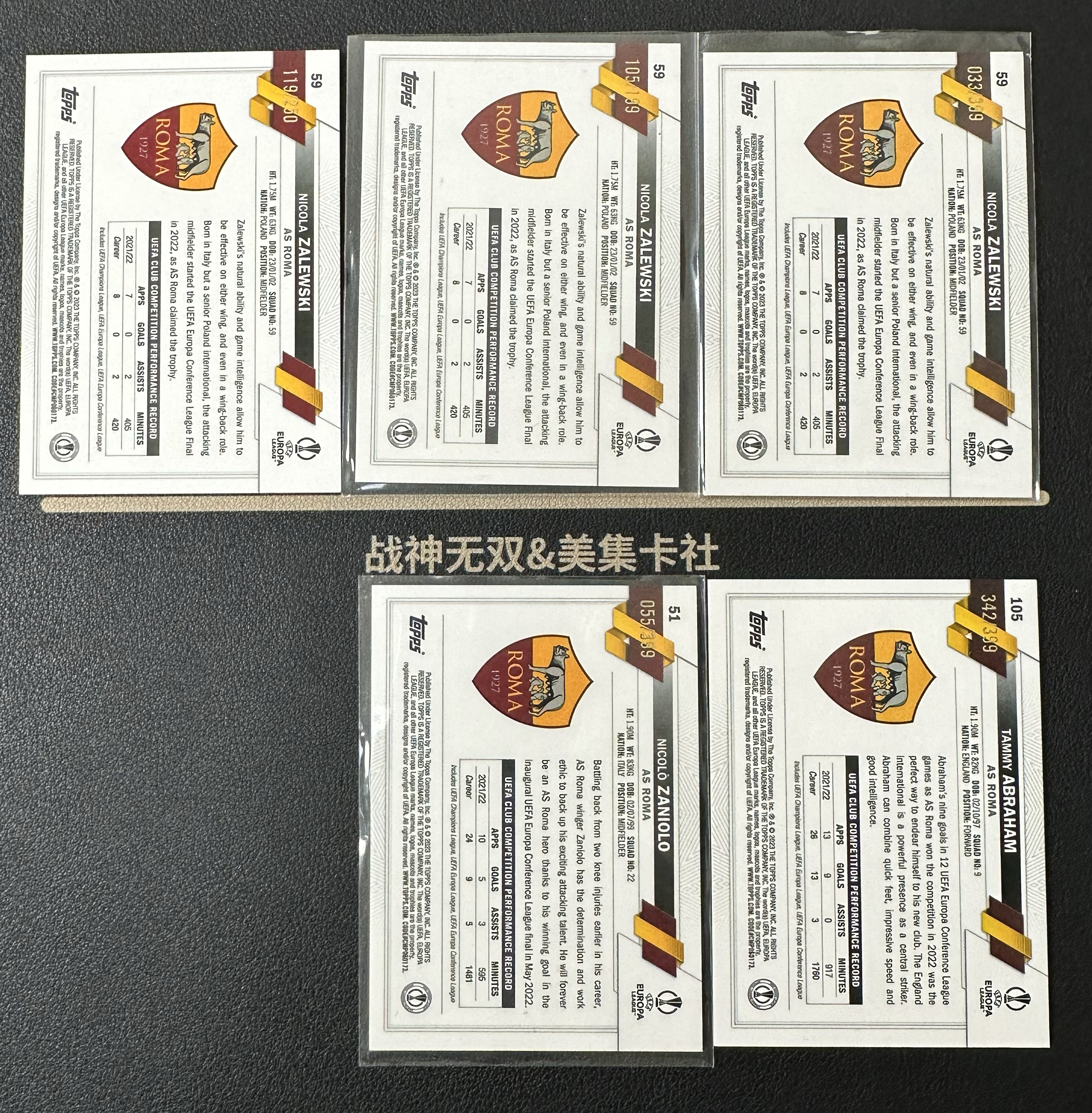2022-23 Topps Chrome 5张带编 lot 扎莱夫斯基RC 扎尼奥洛 亚伯拉罕 罗马 战神无双拍卡 (大熊)