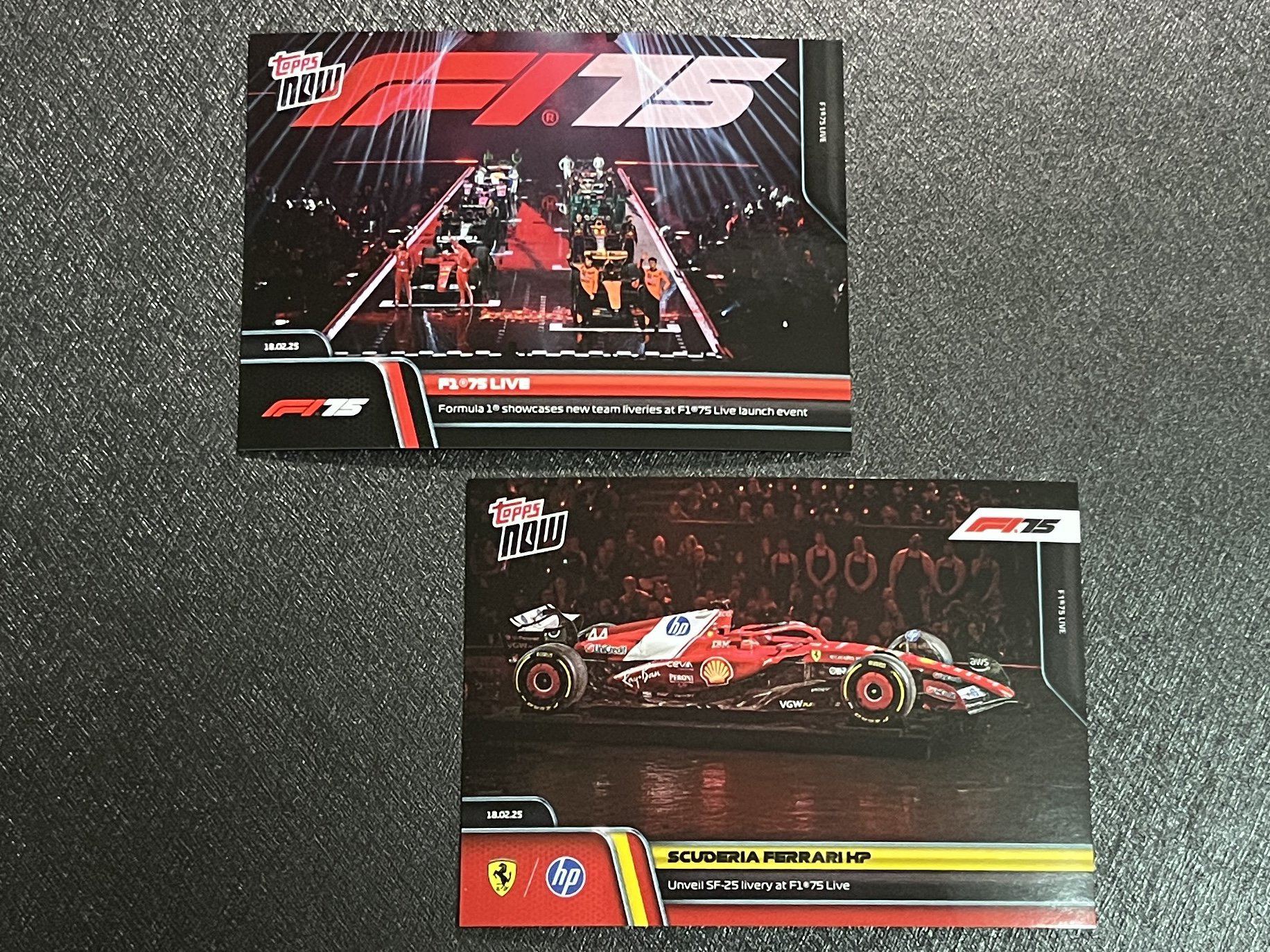 F1 topps now 2025 F1 75周年发布会 合影+法拉利新车发布 汉密尔顿 勒克莱尔 迈凯伦 梅赛德斯 法拉利 红牛 新车新涂装 75周年发布会 2张
