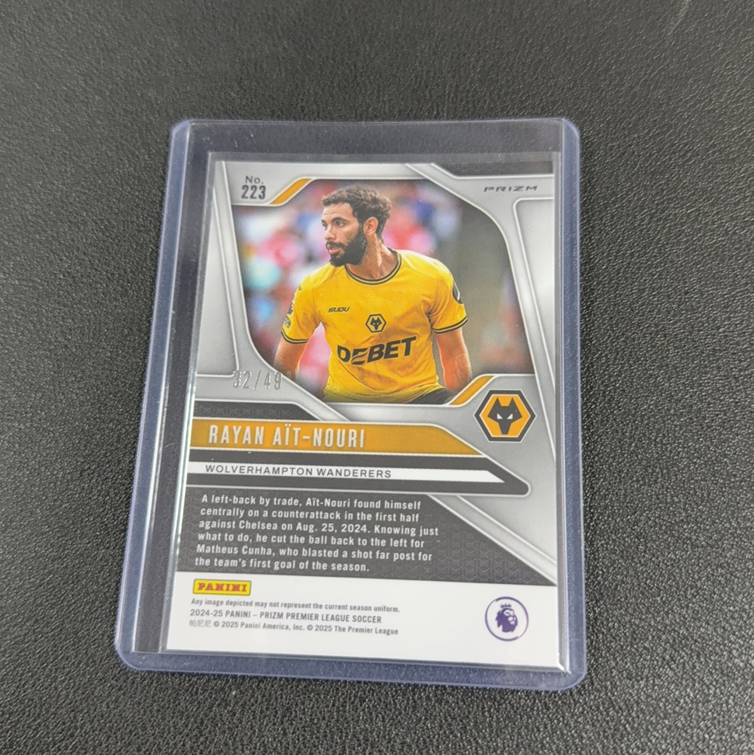 2025 Panini 英超 NOURI 限量32/49编 伍尔弗汉普顿流浪者(狼队) 拉扬·艾特-努里 新拆盒子 拆盒及上膜上夹 肉眼未见明显瑕疵