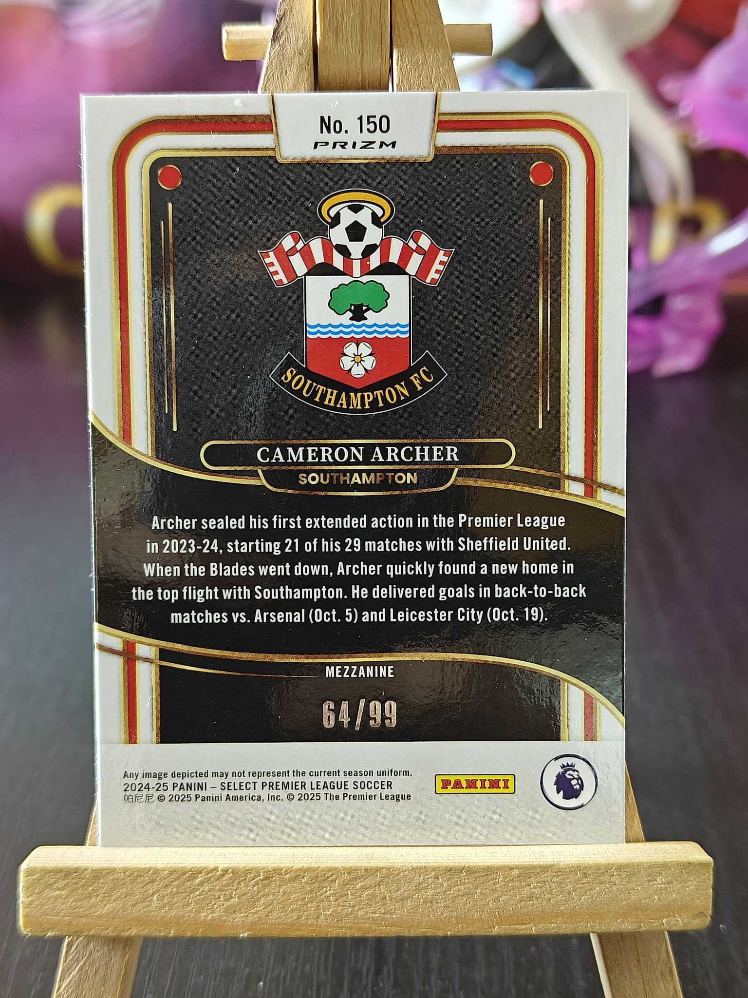 2024-25 Panini Select Cameron Archer 英超 南安普顿 卡梅隆 阿切尔 2级 Mezzanine 粉折 折射 64/99编 卡品如图 收藏必备