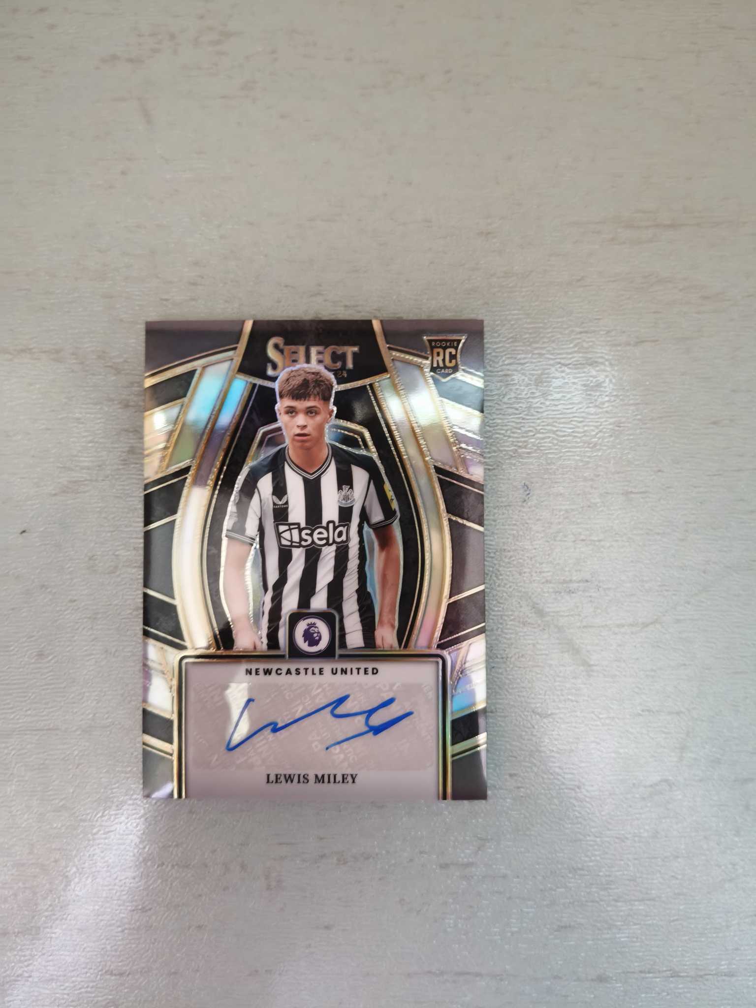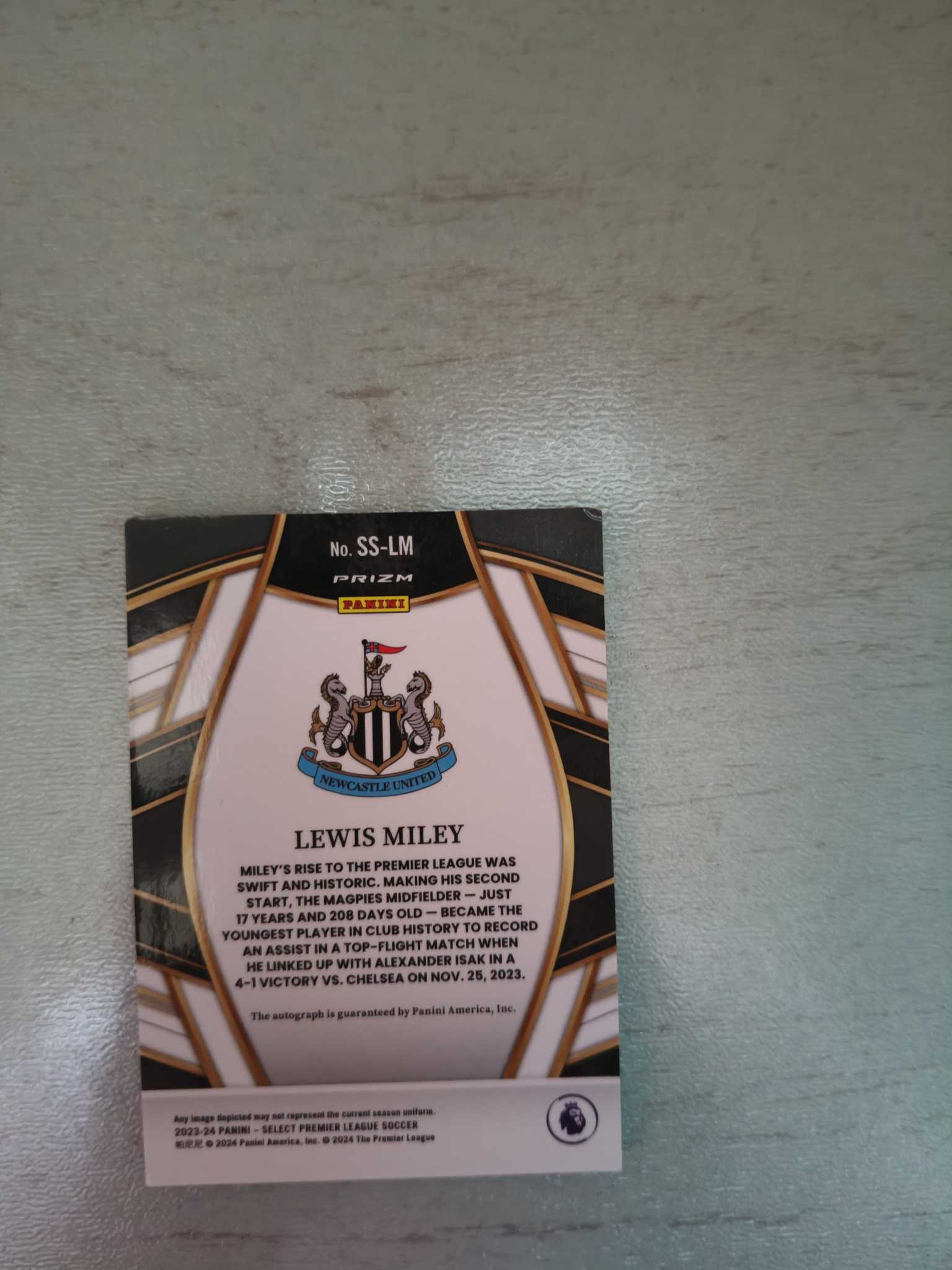 2023-24 Panini Select Lewis Miley RC 英超 纽卡斯尔联 新秀RC 刘易斯.米利 银折 签字 卡品如图, 背面右上角瑕疵