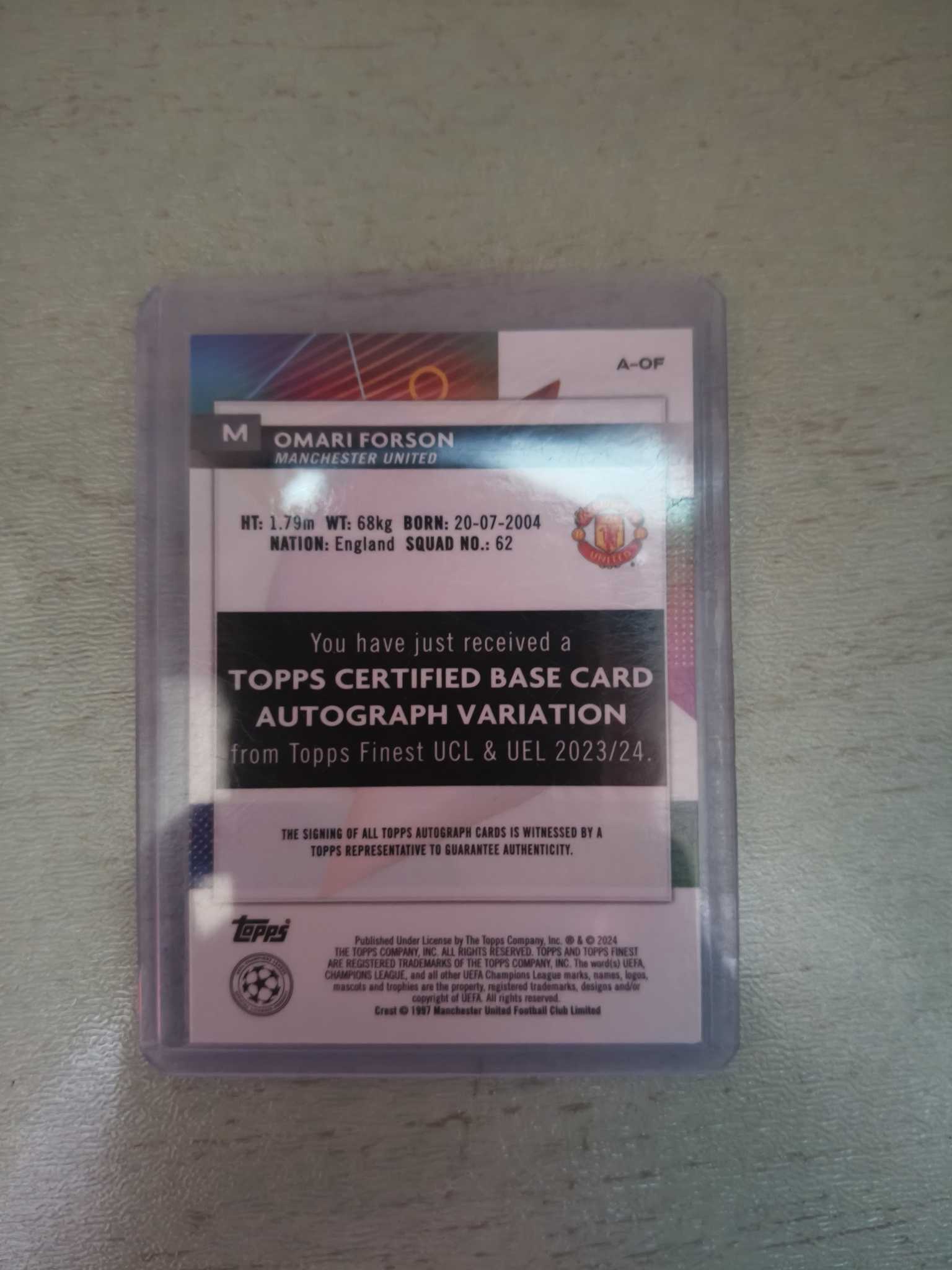 2024 Topps Finest forson RC 欧冠 曼联 新秀RC 福尔森 银折 签字