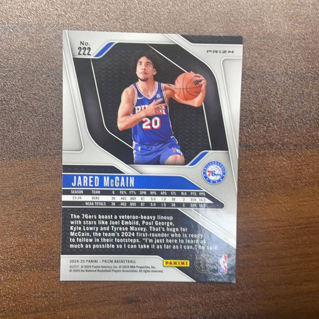 2024-25 Panini Prizm Jared McCain RC Prizm 贾里德 麦凯恩 魔仙哥 RC 新秀 粉碎冰折 76人