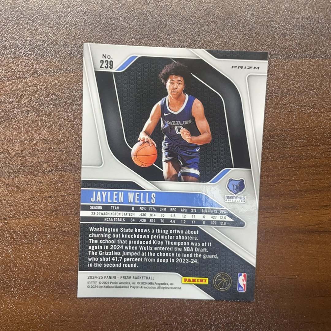 2024-25 Panini Prizm Jaylen Wells RC Prizm 杰伦 威尔斯 RC 新秀 粉碎冰折 灰熊