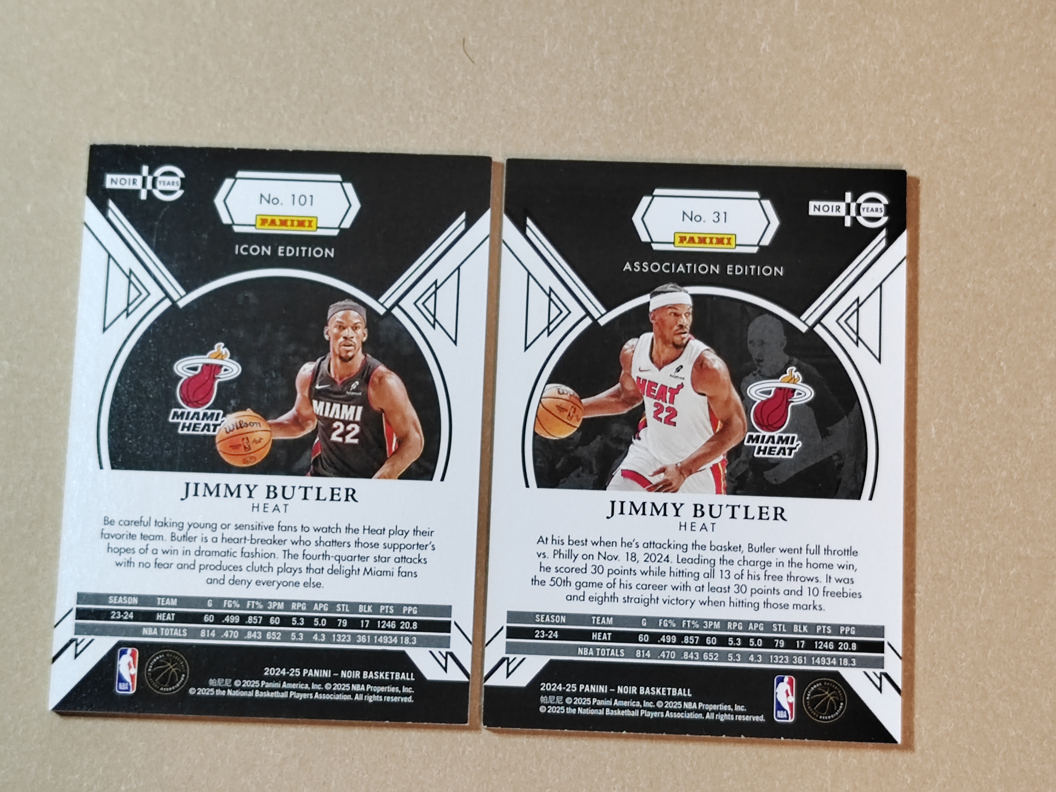 【中卡联】2024-25 Panini Noir Jimmy Butler 末年诺尔 热火 吉米 巴特勒 25编 Base 粉平行 主客场一对 25/25编 尾编 13/25编 卡品如图 Enzo