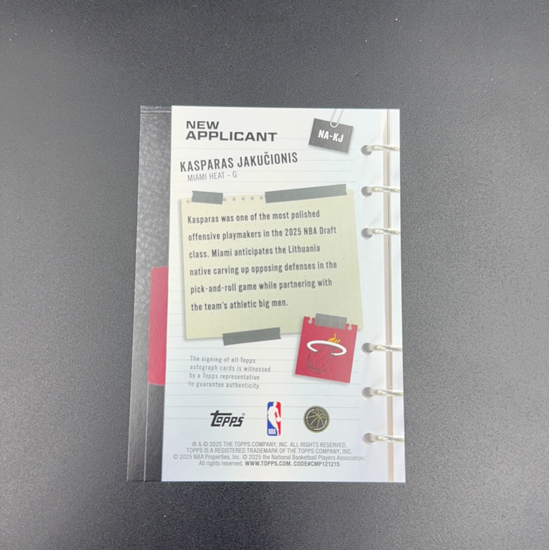 2025 Topps topps Kasparas Jakučionis RC 卡斯帕拉斯 新秀 热火队 签字 topps 卡品如图 未来巨星