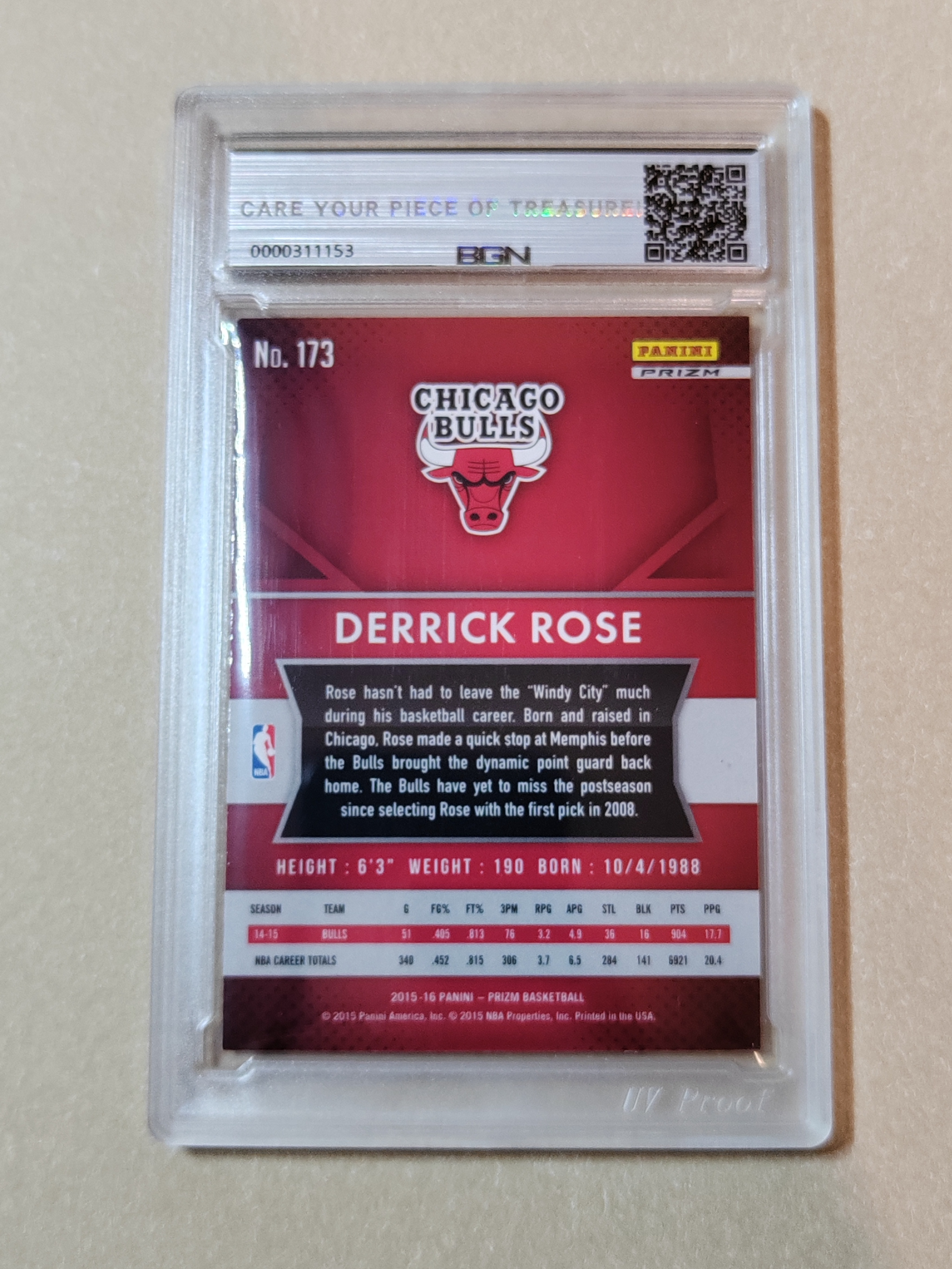 2015-16 Panini Prizm Derrick Rose 风城玫瑰 德里克 罗斯 pz系列 银折 折射 公牛皮最后一年 少见 收藏凑套必备 品相如图 巴特勒队友 已退役 bgn8.5