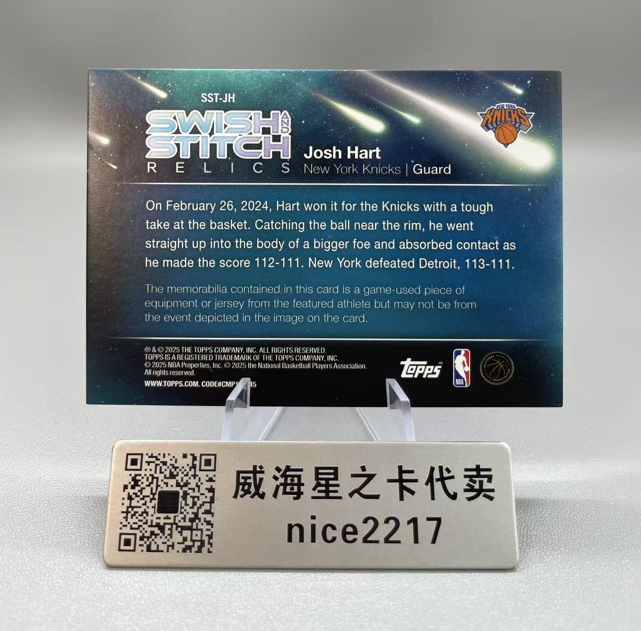 卡品:劳烦仔细看图!!!截标之前可找客服寻要细节照片或者细节视频,一旦出价默认接受卡品(不接受一系列没拍特写,自己没看仔细不想要等理由退换货)截标后不提供任何细节图!如无图片特殊展示瑕疵均为通行品相,一般prizm optic 等系列薄卡的小划痕印刷线,镜面有划痕属于正常品相,国宝IMM等系列厚卡的小白边小白角翘角钝角等,都属于通行品相。完美主义者请直接购买PSA10或者公博金标,发货之后不退不换(购卡的买家拆快递的时候也请拍开箱视频以便维护自己的权益)