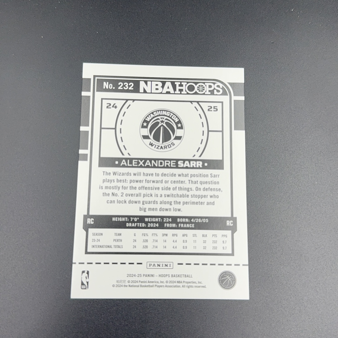 2024-25 Panini NBA Hoops Alex Sarr RC 亚历克斯 萨尔 新秀 奇才队 15编 低编 红爆炸 正新秀 卡品如图