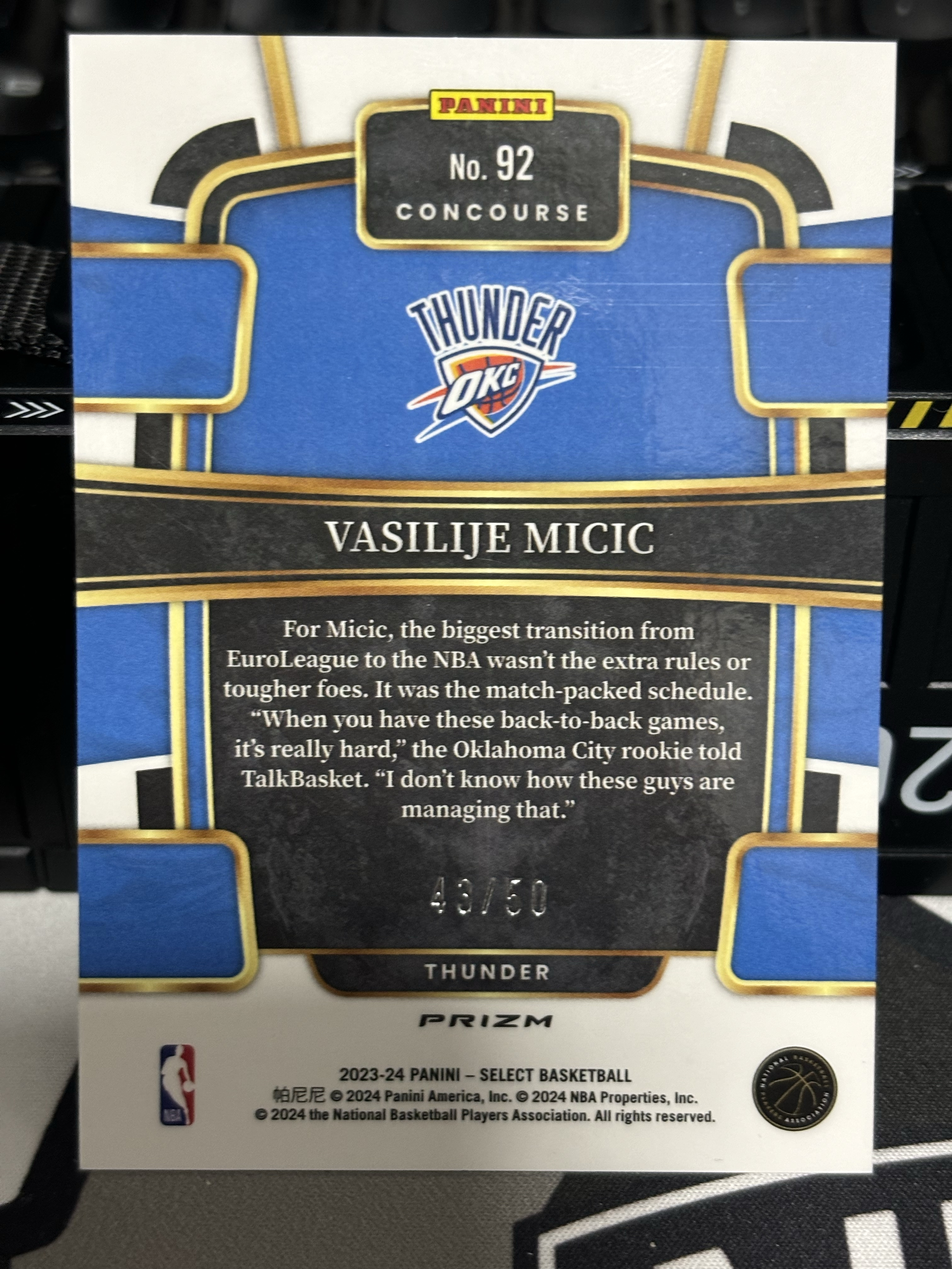 2023-24 Panini Select VASILIJE MICIC RC 雷霆队 瓦西里耶 米西奇 新秀 50编 一级绿波纹折射 43/50编 谢伊 吉尔杰斯 亚历山大、霍姆格伦队友 不保卡品