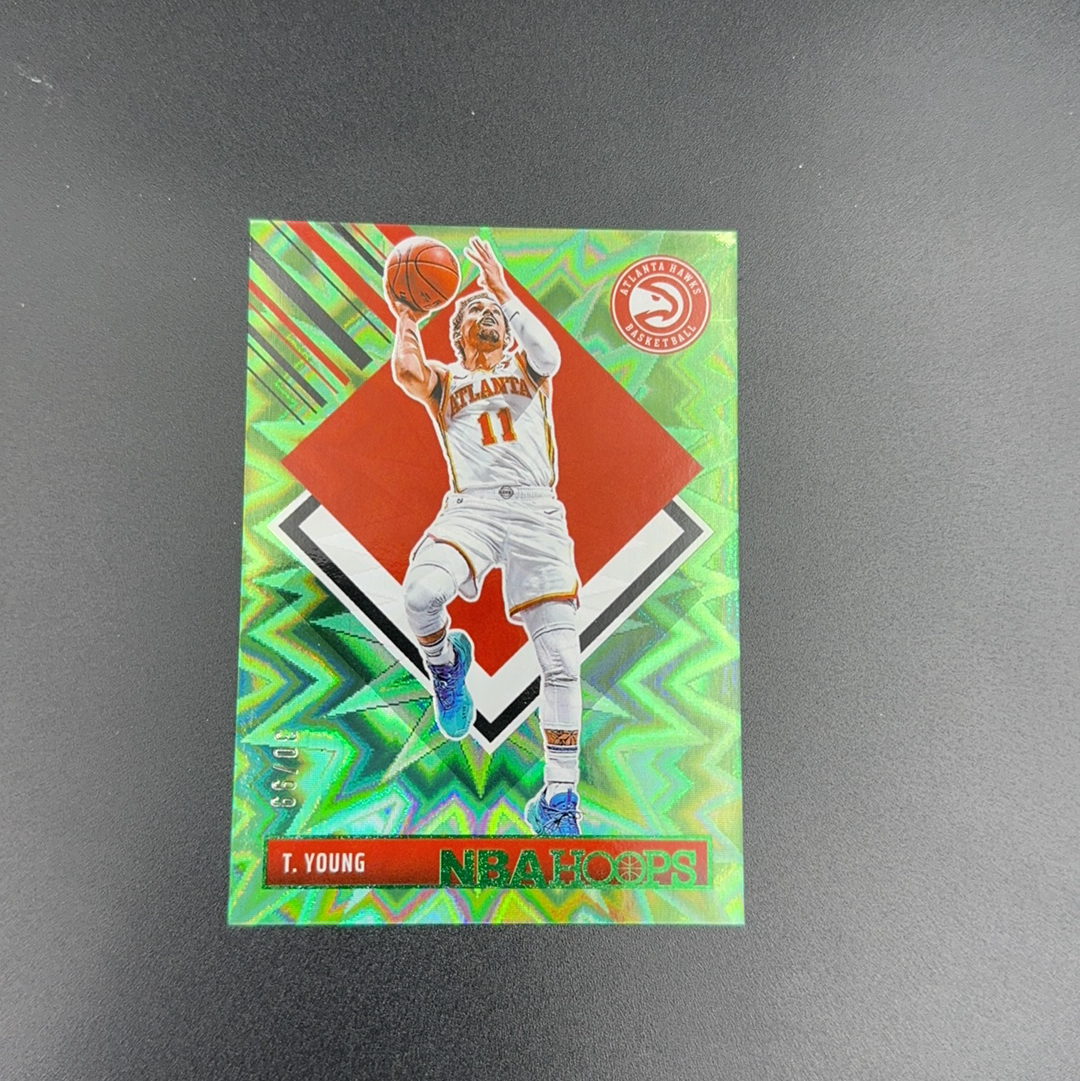 2024-25 Panini NBA Hoops Trae Young 特雷 杨 老鹰队 99编 特卡 绿爆炸 折射 卡品如图
