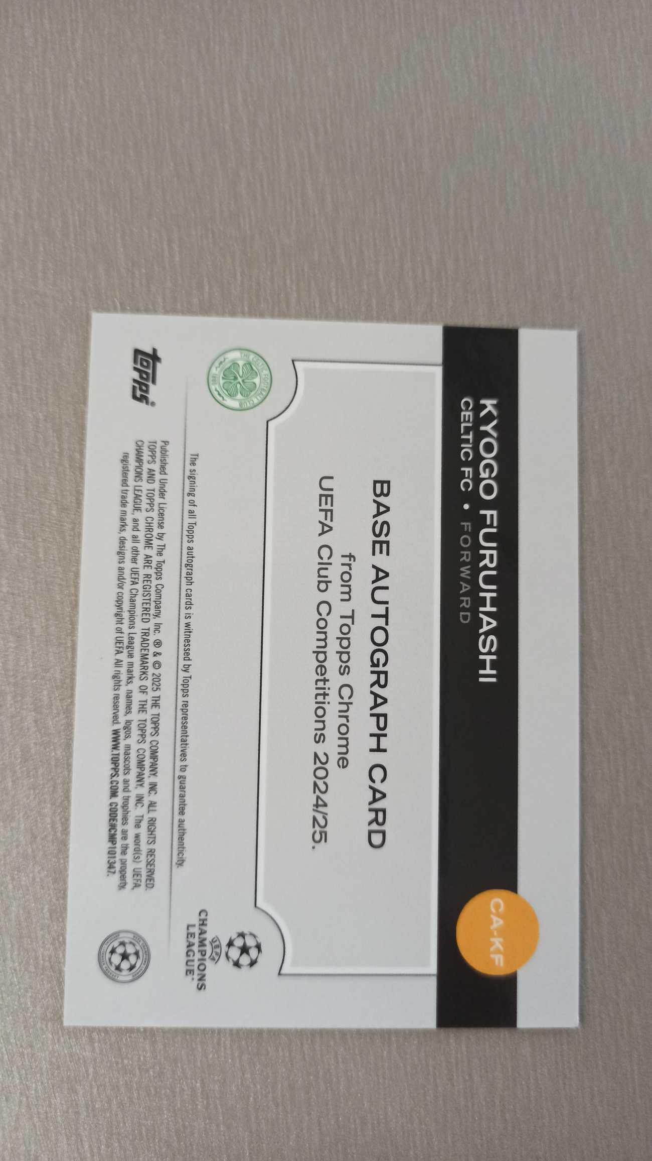 2025 Topps Chrome Kyogo Furuhashi 古桥亨梧 090/199编 签字 卡品如图收藏必备 卡默认都有瑕疵白边介意勿拍