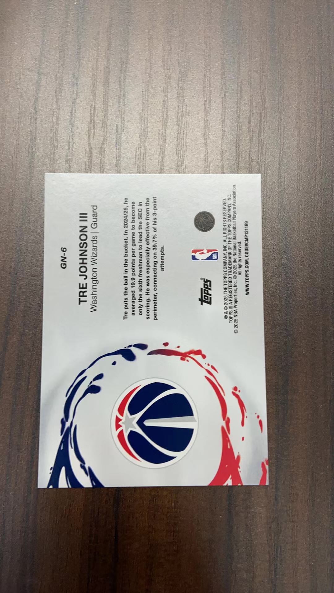 2025 Topps FLAGSHIP Tre Johnson III RC 特雷 约翰逊 三世 奇才 新秀 GENERATION now 特卡 卡片如图 收藏必备 凑套必备