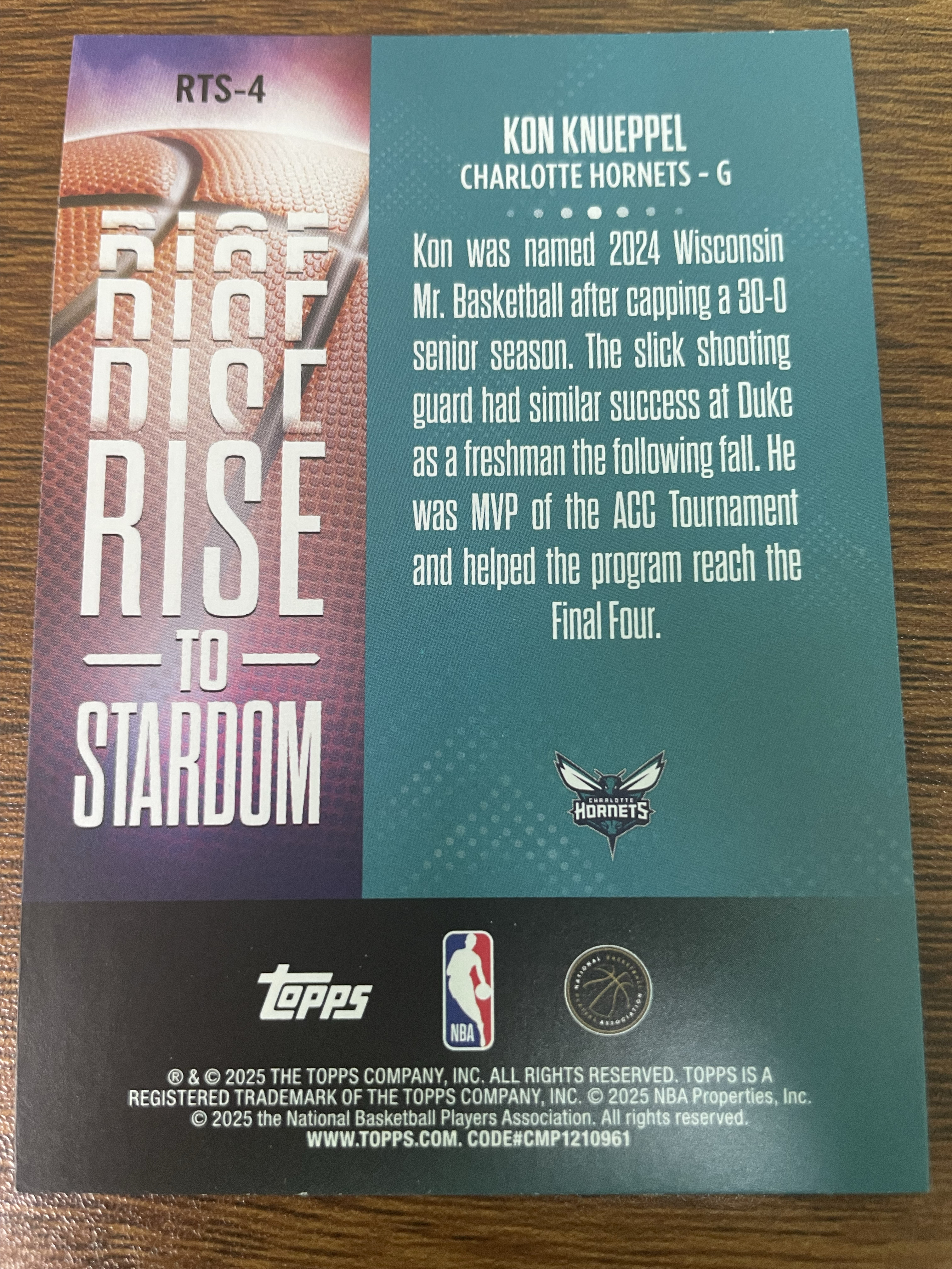 2025-26 Topps Flagship Kon Knueppel RC 康 克尼普尔 新秀 Rise To Stardom特卡 银折 黄蜂 收藏必备 卡品如图 影视