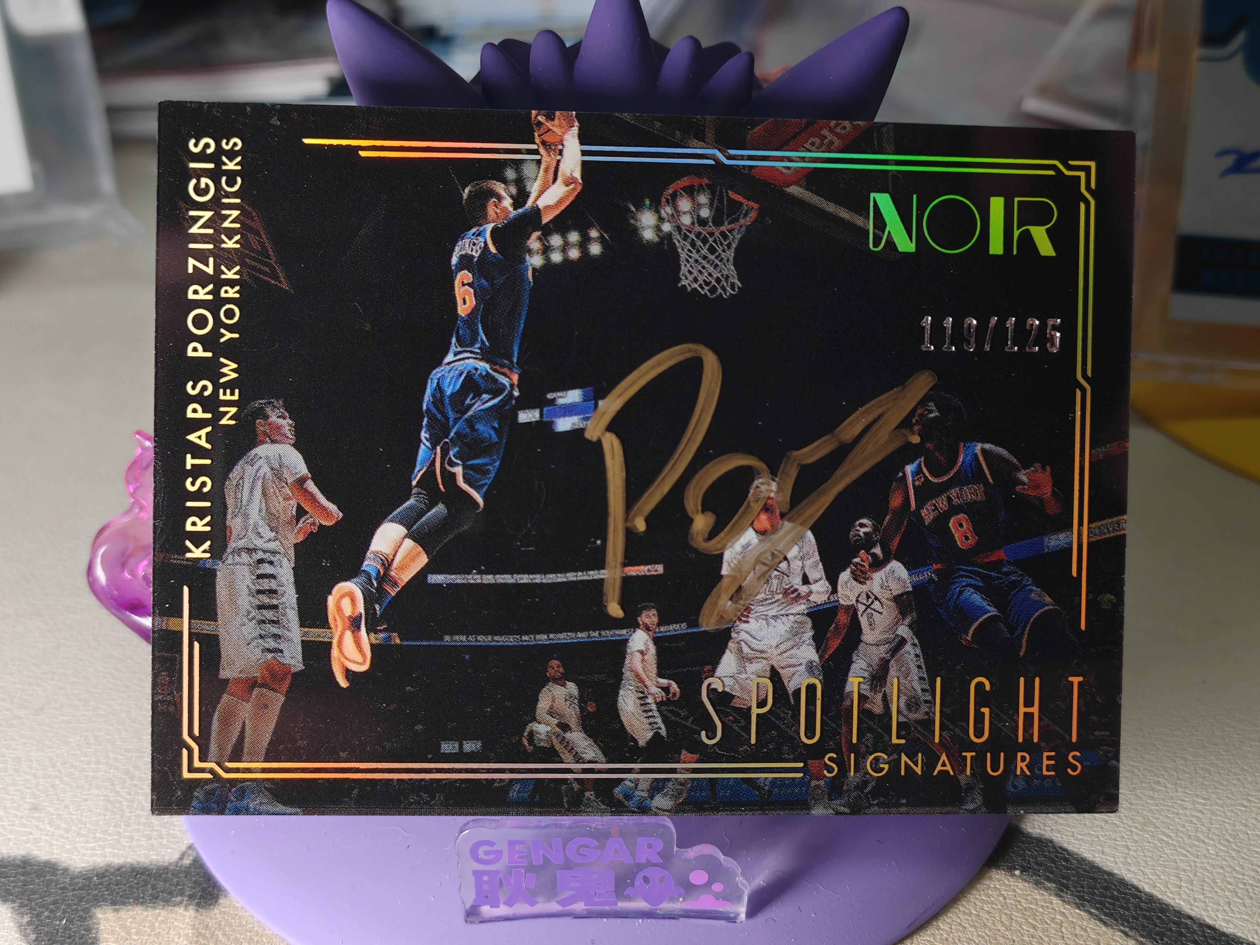 2016-17 Panini Noir Kristaps Porzingis 诺尔 尼克斯 波尔津吉斯 波神 独角兽 聚光灯 大比例 SSP 签字 卡签 金笔 119/125编 不保卡品 专收必备
