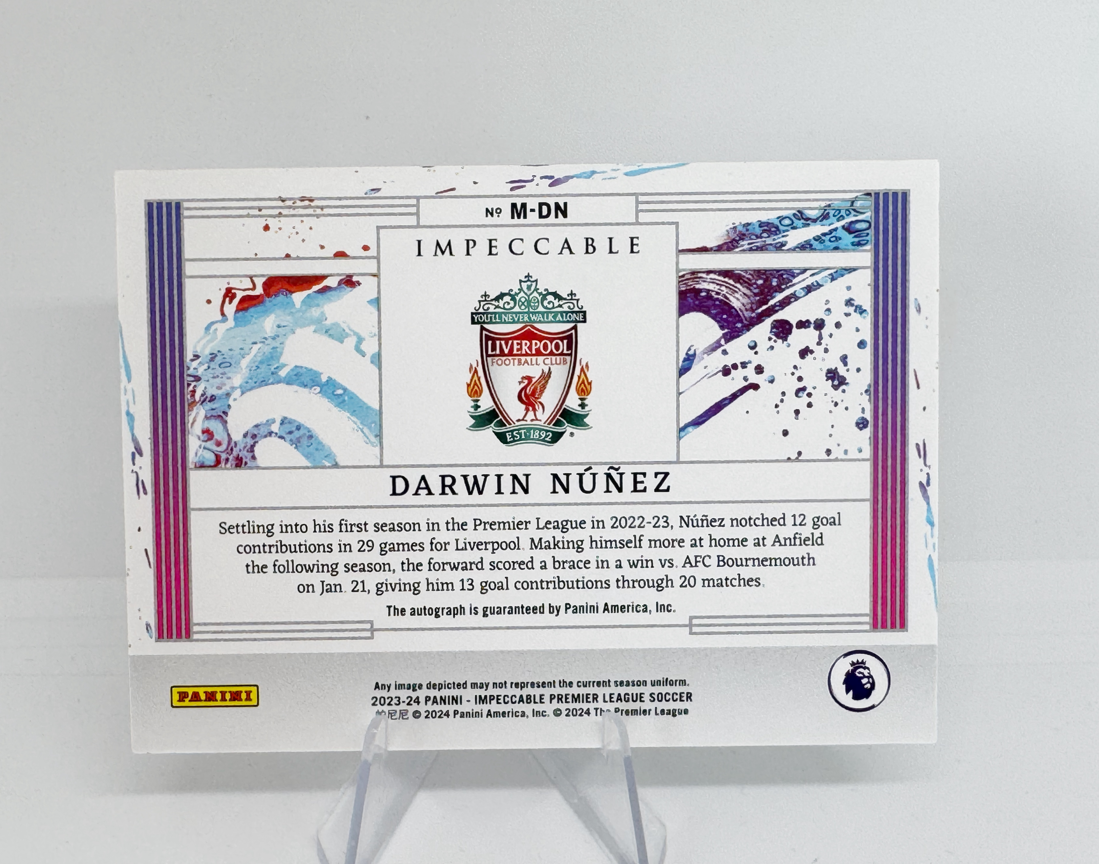 2023-24 Panini Impeccable Darwin Nunez 英超 小真金 乌拉圭 利物浦 达尔文 努涅斯 80/99编 油画 杰作签 签字 签名