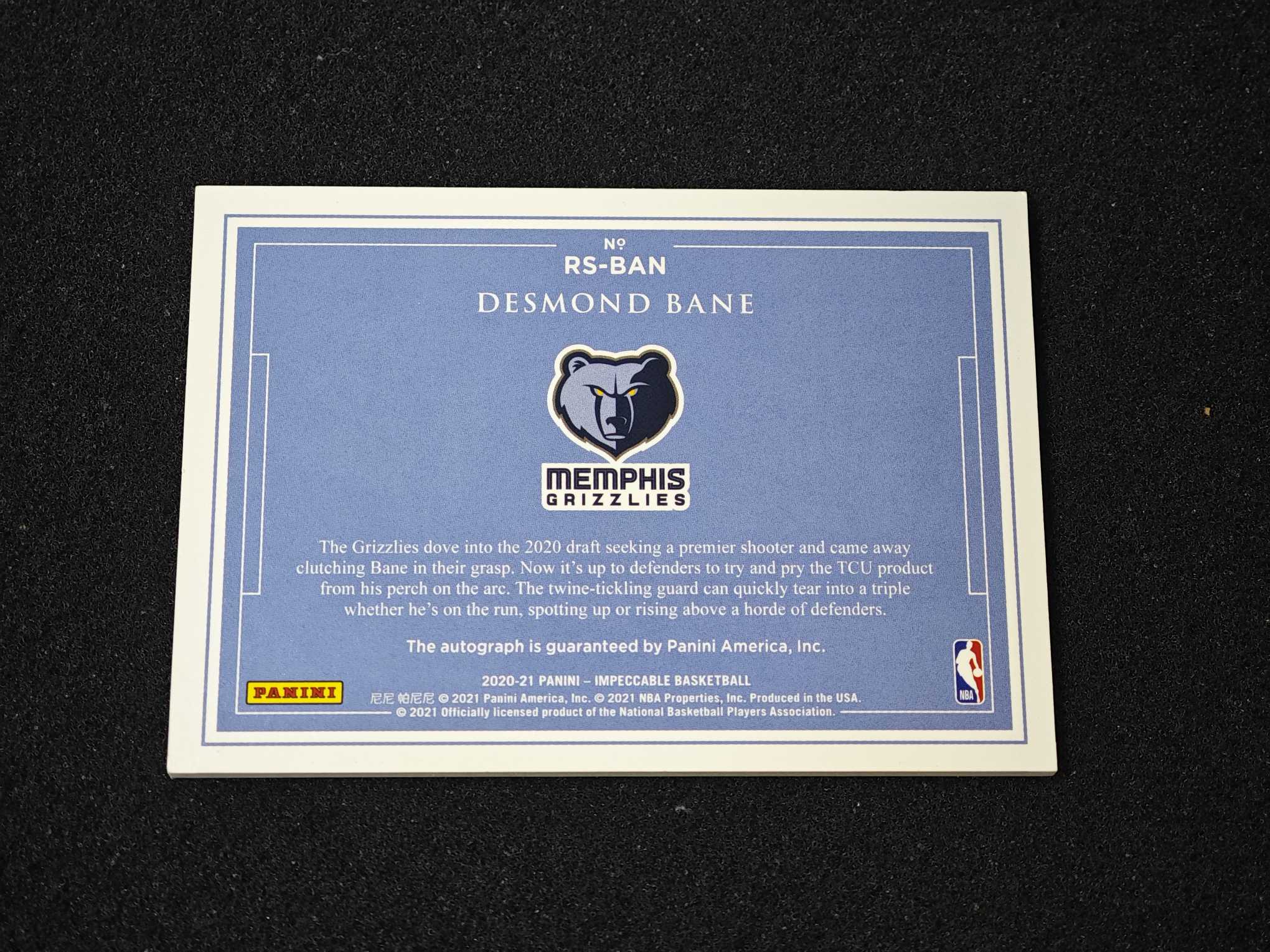 2020-21 Panini Impeccable Desmond Bane RC 小真金 灰熊 新秀 戴斯蒙德 贝恩 签字 卡签 /99编 #htc