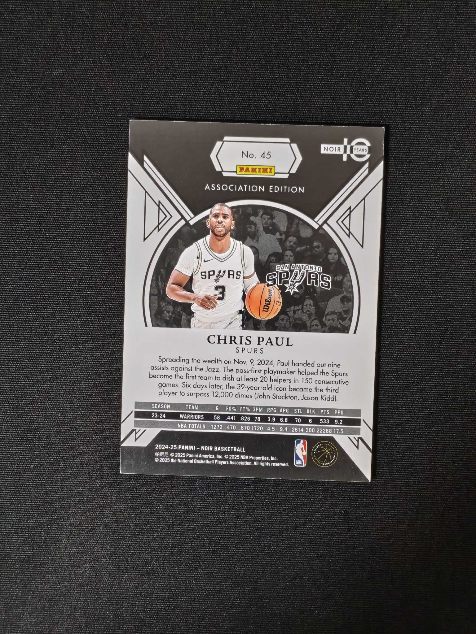 《拍多少回款多少》2024-25 Panini Noir Chris Paul 诺尔10周年 克里斯 保罗 CP3 炮哥 船王 控卫之神 马刺 厚卡 base 99编 银平行 专收必备 退役无价 传奇