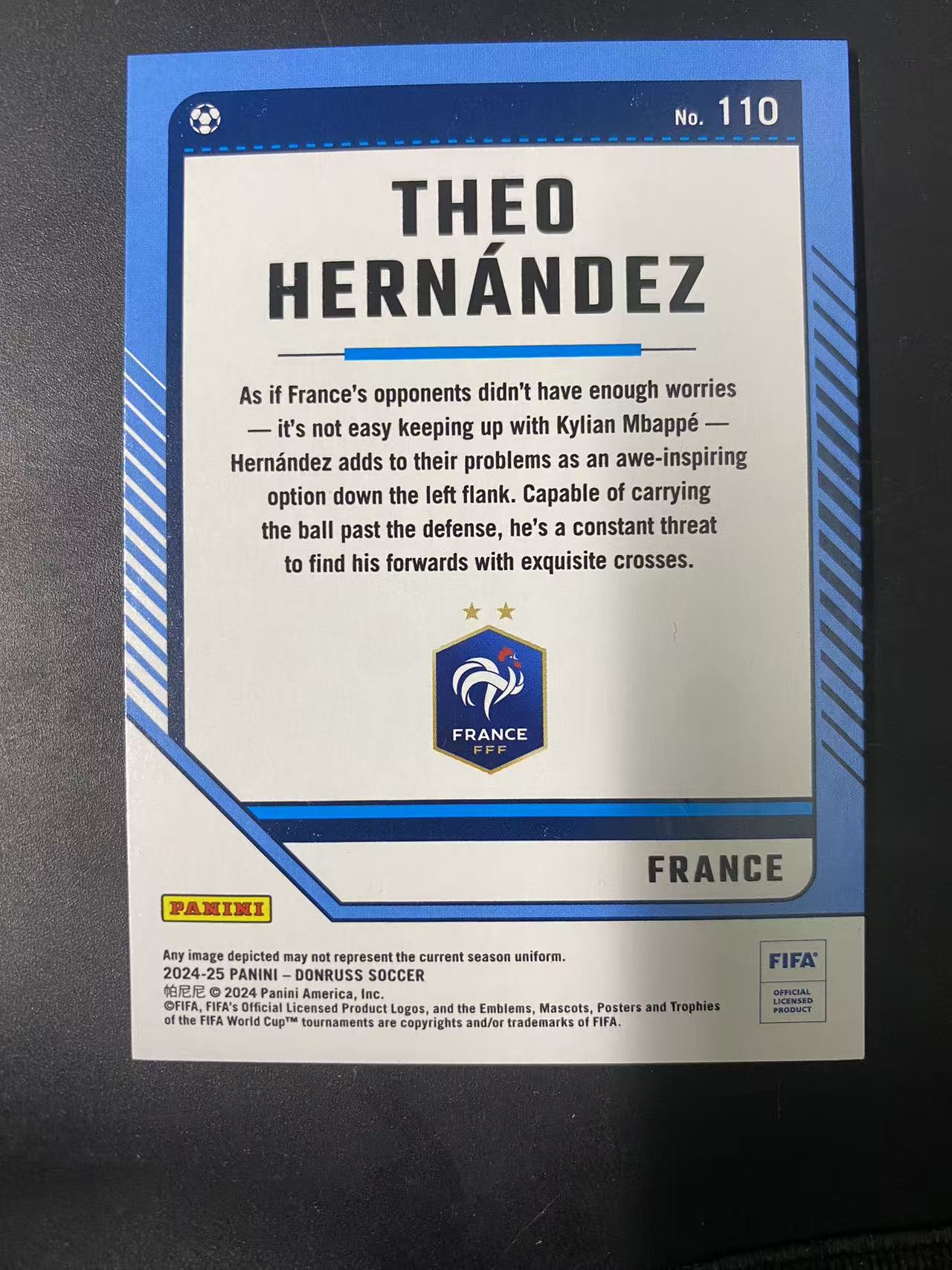 2024-25 Panini Donruss Theo Hernández 杜蕾斯 法国 特奥 埃尔南德斯 红折射 99编 限量 卡品如图 微瑕 睡总