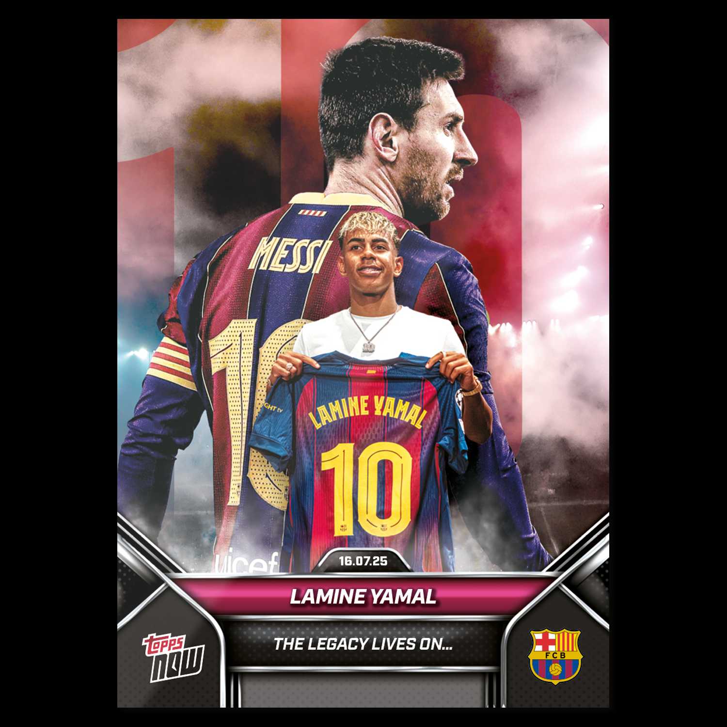 2025 Topps Now Leo Messi&Lamin Yamal 欧冠 亚马尔&梅西 巴塞罗那 10号的传承 值得收藏【JS卡牌潮玩】(随机发货,卡品通行)