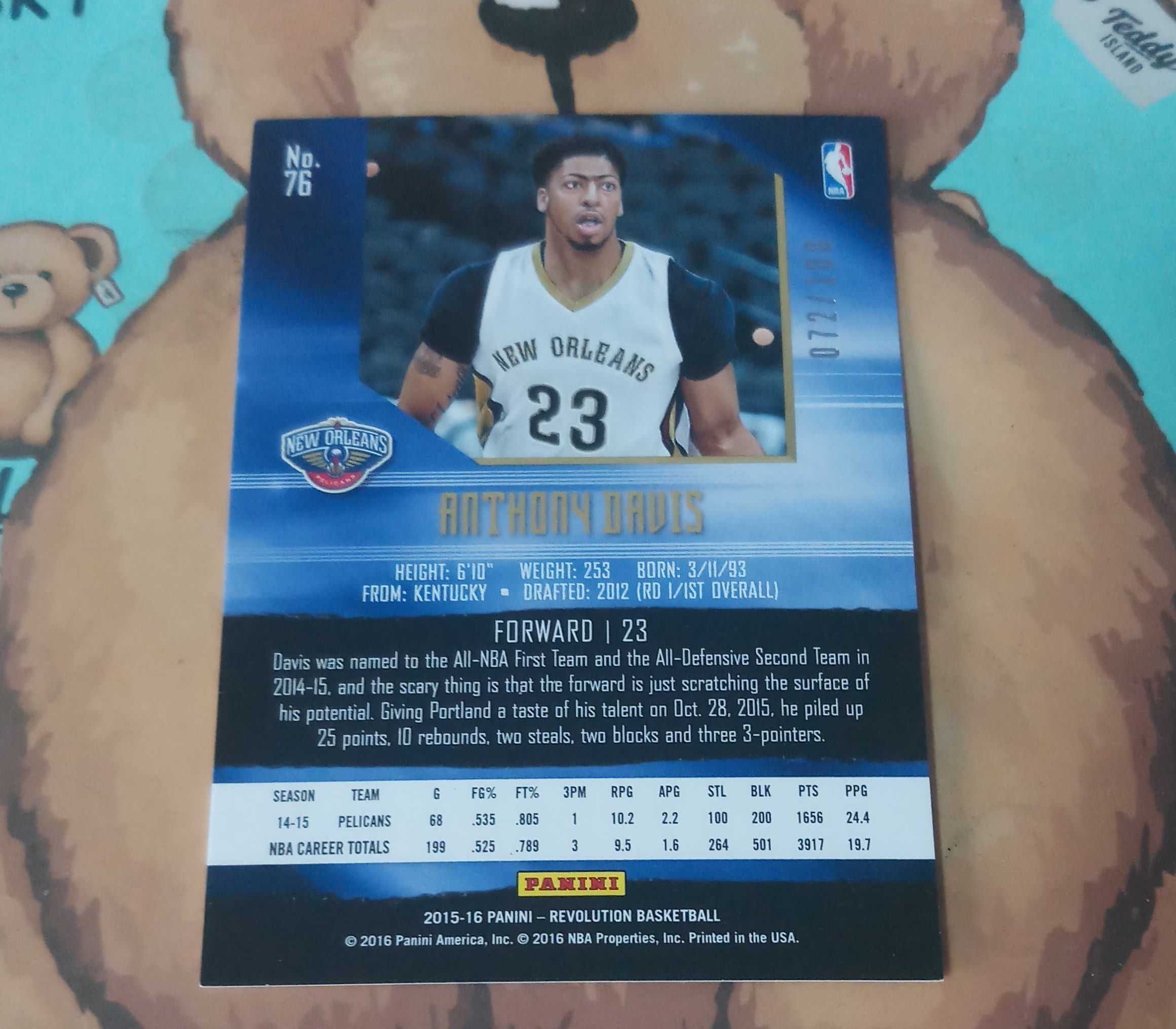 2015-16 Panini Revolution Anthony Davis 革命系列 鹈鹕队 浓眉 安东尼戴维斯 平行折射特卡 格子折 低编限量72/100编 库里亚历山大同系列 卡品如图 小猫