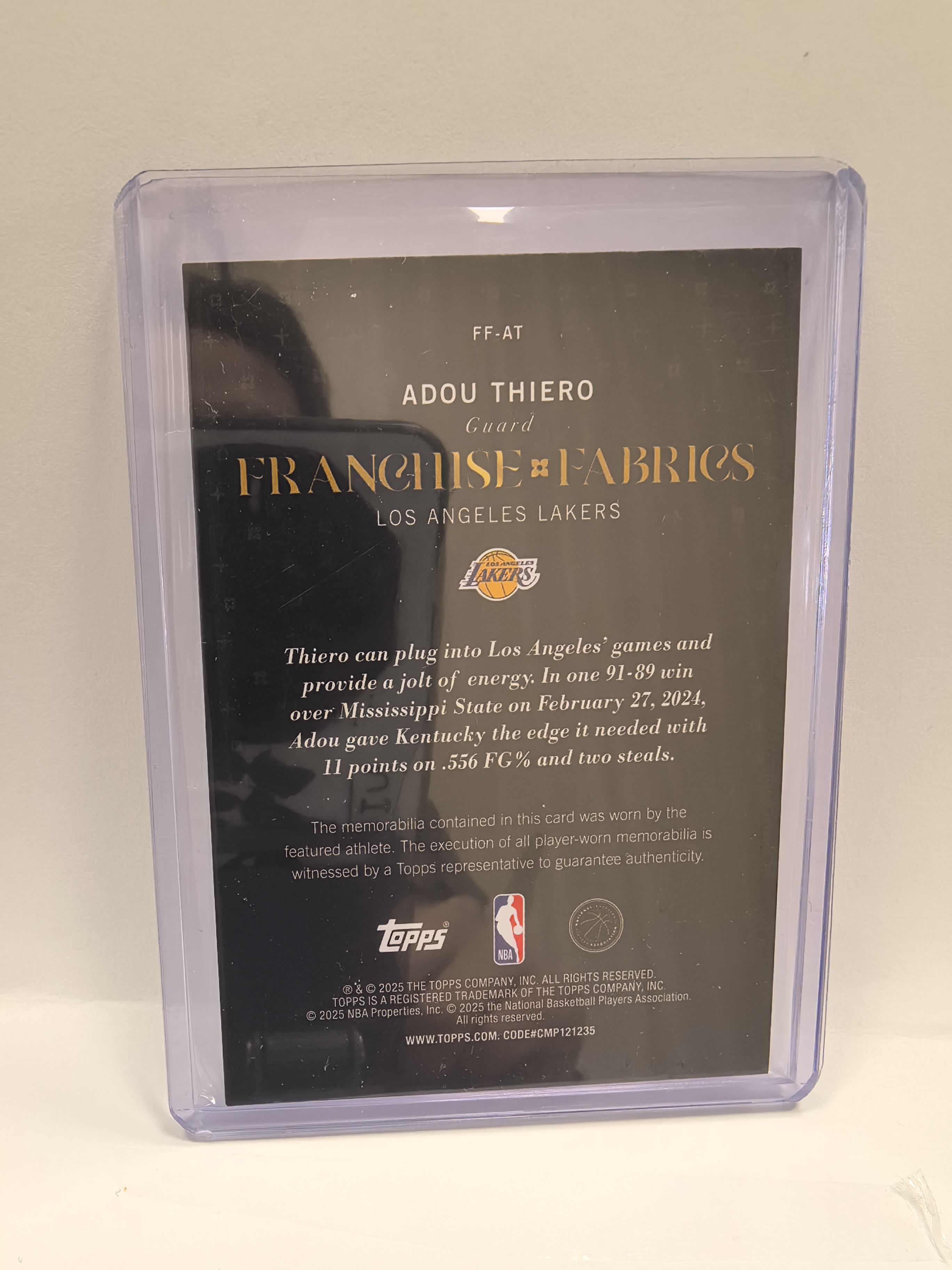 2025 Topps Flagship Adou Thiero RC 湖人 阿杜 蒂耶罗 新秀 RC 单窗 球衣 物料 卡品如图