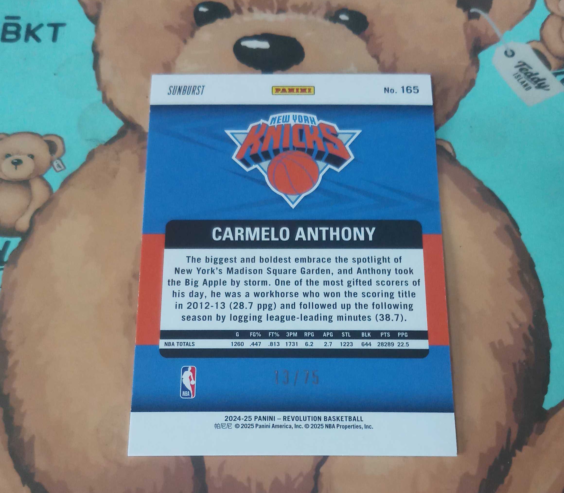 2024-25 Panini Revolution Carmelo Anthony 革命系列 尼克斯队 甜瓜 卡梅隆安东尼 平行折射特卡 佛光折 低编限量13/75编 库里詹姆斯同系列卡品如图 小猫
